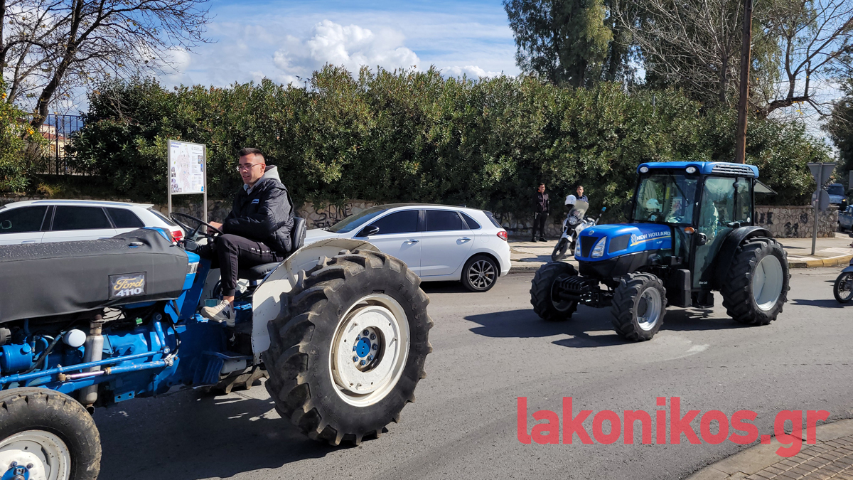 Το συλλαλητήριο είχε και συνέχεια, καθώς οι παραγωγοί επιβιβάστηκαν στα οχήματά τους και, μέσων κεντρικών οδών της Σπάρτης, κατέληξαν στο κέντρο της πόλης, παρατάσσοντας τα τρακτέρ τους επί της κεντρικής πλατείας. Έγιναν χαιρετισμοί από εκπροσώπους φορέων, ενώ παρεμβάσεις πραγματοποίησαν ο γραμματέας της Ομοσπονδίας Αγροτικών Συλλόγων Περιφέρειας Πελοποννήσου (ΟΑΣΠΠ), Βασίλης Βρουλίτης, ο πρόεδρος του Συλλόγου Επαγγελματιών Μελισσοκόμων Αρκαδίας-Λακωνίας-Μεσσηνίας, Γιώργος Σεντεμέντες, ο πρόεδρος του Συλλόγου Παραγωγών Λαϊκών Αγορών Λακωνίας, Σταύρος Λιακάκος και ο πρόεδρος του Σωματείου Συνταξιούχων ΙΚΑ-ΕΦΚΑ Λακωνίας, Βασίλης Σαραντόπουλος.