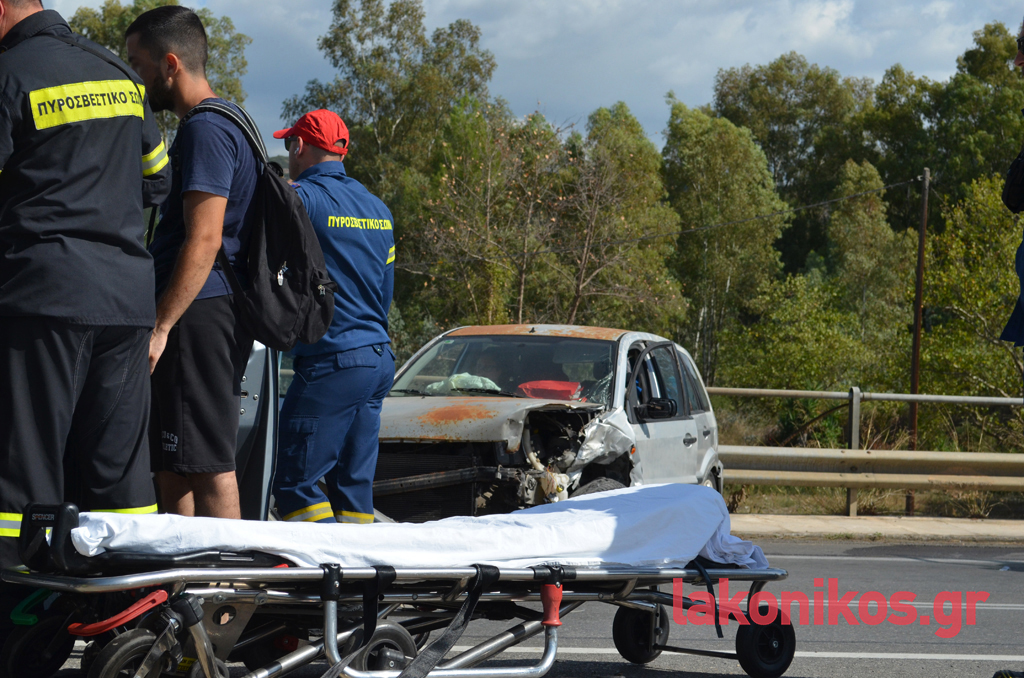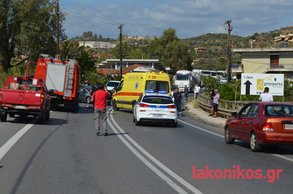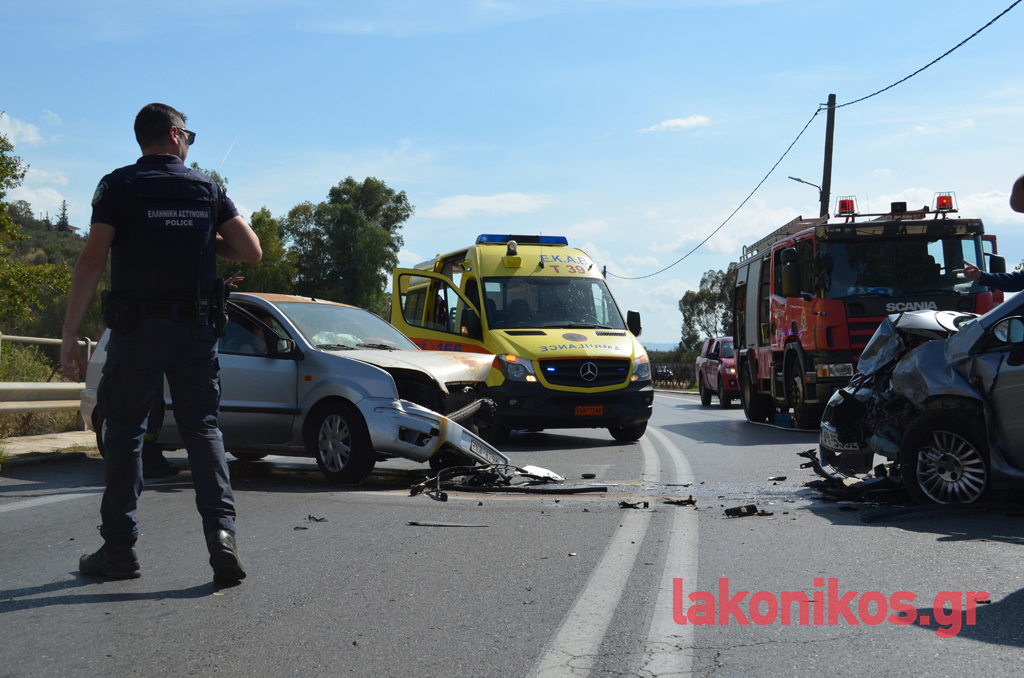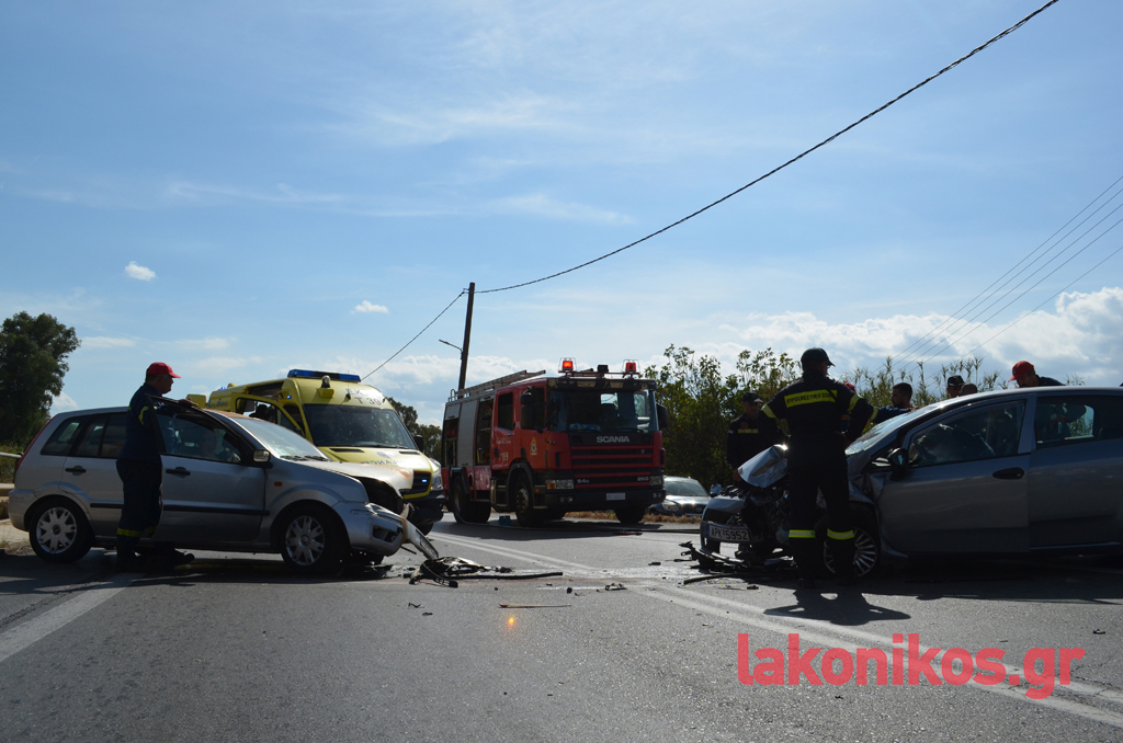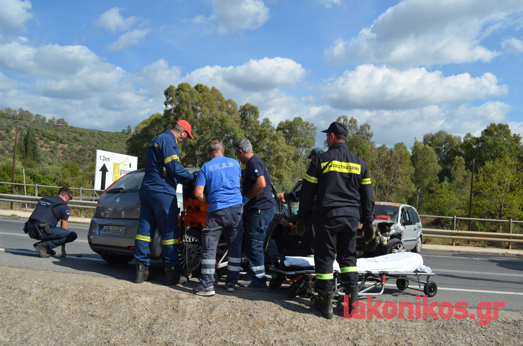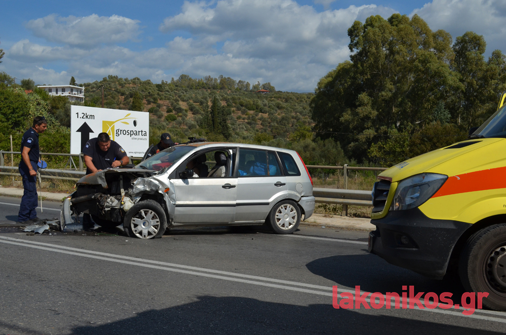 Στα αυτοκίνητα επέβαιναν συνολικά πέντε άτομα, που φέρονται να υπέστησαν ελαφρείς τραυματισμούς. Στο ένα όχημα βρίσκονταν ένα ζευγάρι ηλικιωμένων με τον εγγονό τους και στο δεύτερο μια μητέρα με την κόρη της. Όλοι διεκομίσθησαν στο Νοσοκομείο Σπάρτης για να τους παρασχεθούν οι πρώτες βοήθειες και να υποβληθούν στις απαραίτητες εξετάσεις. Η αρχική ενημέρωση, σύμφωνα με πληροφορίες, αναφέρει πως τα κυριότερα τραύματα ορισμένων εκ των εμπλεκομένων είναι ορθοπεδικής φύσεως, χωρίς πάντως η κατάστασή τους να εμπνέει λόγους ανησυχίας και να διατρέχει κίνδυνο η ζωή τους. Και τα δύο οχήματα υπέστησαν εκτεταμένες υλικές ζημιές.