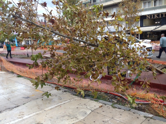 Κι ενώ κάποιοι, όχι πολλοί, άρχισαν να καλοβλέπουν τα πλατάνια που μόλις φυτεύτηκαν στο κεντρικό τμήμα της ανάπλασης Παλαιολόγου, ήρθε ο στρατηγός άνεμος, να τους αλλάξει κάπως τη διάθεση. Άμα δεν σε θέλει, αδερφέ μου…!