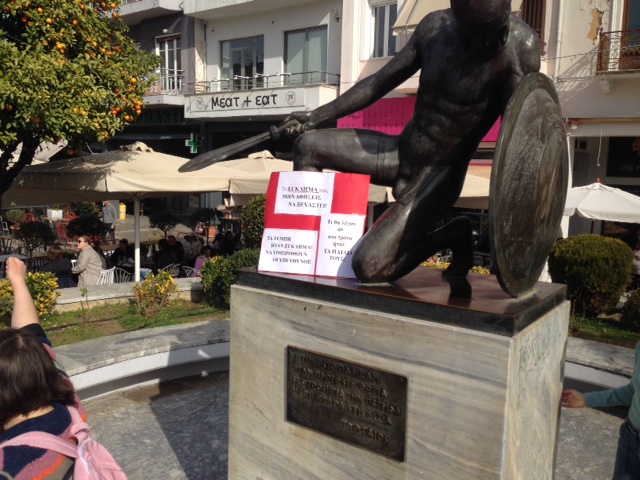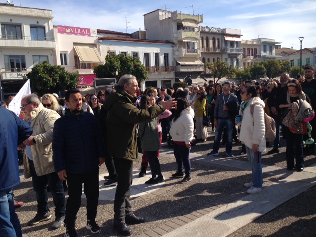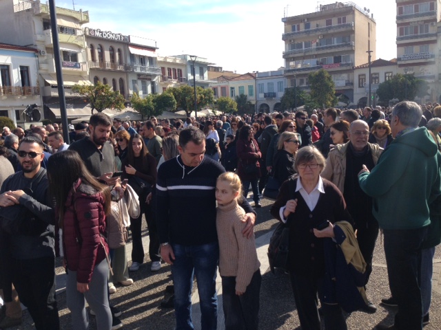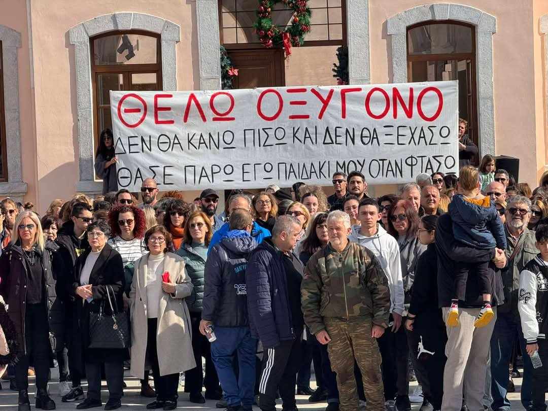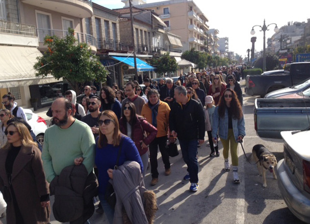 Αυθόρμητα αποφασίστηκε η συγκέντρωση να προχωρήσει σε πορεία. Το μεγάλο πλήθος διέσχισε την λεωφόρο Κων/νου Παλαιολόγου, έφτασε στην Πινακοθήκη και επέστρεψε στην κεντρική πλατεία. Σφιγμένα πρόσωπα και συγκίνηση. Εντοπίσαμε δακρυσμένους πολίτες, ακόμα και αν δεν συμμετείχαν στην πορεία. Λίγα συνθήματα ακούστηκαν, σποραδικά. Μα ένα στρίγγλιζε στα αυτιά, «Δεν έχω οξυγόνο, δεν έχω οξυγόνο».