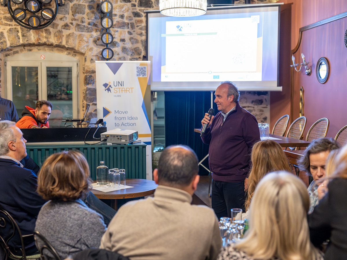 Στον χαιρετισμό του ο περιφερειάρχης Πελοποννήσου, Δημήτρης Πτωχός, υπογράμμισε τη σημασία της επιχειρηματικότητας και της καινοτομίας για τη μελλοντική ανάπτυξη της περιοχής: «Η Πελοπόννησος διαθέτει μοναδικά πλεονεκτήματα, αλλά για να τα αξιοποιήσουμε στο έπακρο, χρειάζεται μια νέα προσέγγιση στην επιχειρηματικότητα και την ανάπτυξη. Η παραγωγικότητα και η ανταγωνιστικότητα δεν αυξάνονται από μόνες τους – απαιτούν στρατηγικές αποφάσεις, επενδύσεις και κυρίως, αλλαγή νοοτροπίας. Η ιδιωτική πρωτοβουλία είναι ο μοχλός που μπορεί να επιταχύνει την ανάπτυξη και να δημιουργήσει ευκαιρίες για όλους. Μέσα από τις νέες δομές, όπως τα Unistart Hubs, το Κέντρο Καινοτομίας και Επιχειρηματικότητας και τον Κόμβο Βιοοικονομίας, παρέχουμε τα εργαλεία, τη γνώση και τους πόρους που θα στηρίξουν όσους θέλουν να επενδύσουν στον τόπο μας».