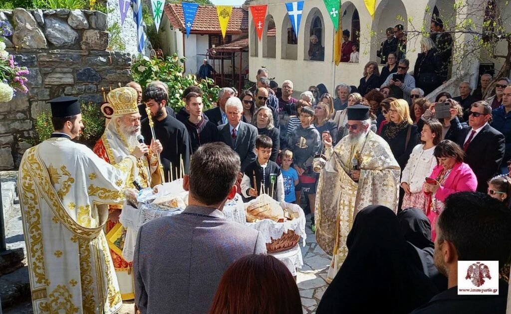 Πριν την ολοκλήρωση της Θείας Λειτουργίας, ευλογήθηκαν οι άρτοι στον προαύλιο χώρο της Μονής. Κατακλείοντας την πανηγυρική λατρευτική σύναξη, ο σεπτός Ποιμενάρχης εξέφρασε θερμές ευχαριστίες στον ομιλητή, ενώ ευχήθηκε η Παναγία να κρατά στην στοργική μητρική αγκαλιά Της κάθε ευλαβή χριστιανό.
