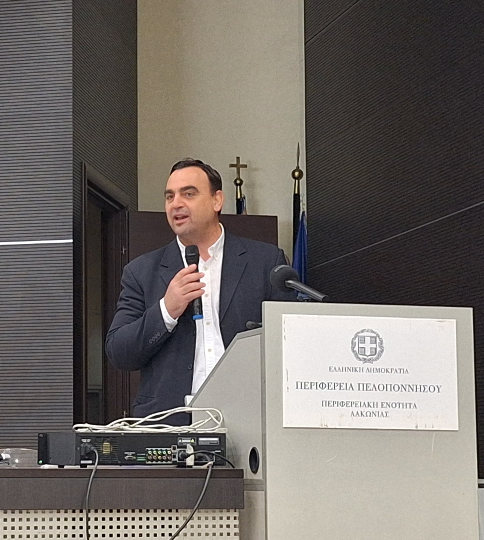 Στην εκδήλωση που πραγματοποιήθηκε στο Διοικητήριο Λακωνίας παρευρέθηκε και απηύθυνε χαιρετισμό, ο αντιπεριφερειάρχης Λακωνίας, Θεόδωρος Βερούτης.