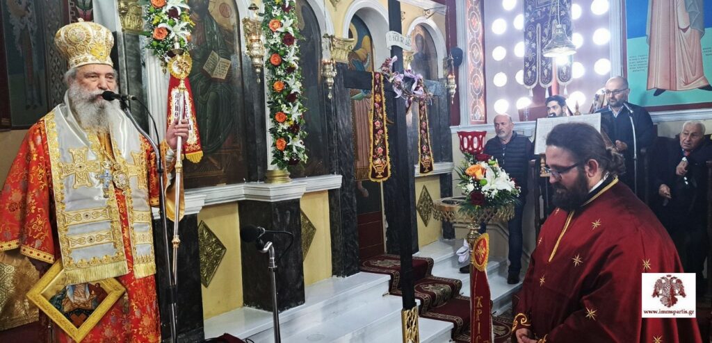 Στη συνέχεια, ο σεβασμιώτατος μίλησε για το όραμα του Αγίου Κωνσταντίνου με το περίφημο «Εν Τούτω Νίκα», που οδήγησε στην καθιέρωση του Τιμίου και Ζωοποιού Σταυρού και την εδραίωση του Χριστιανισμού με σειρά σημαντικών αποφάσεων.