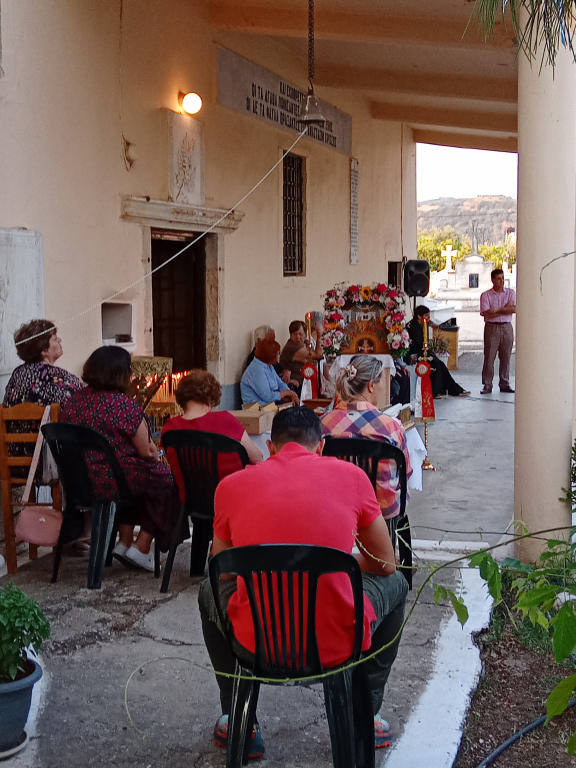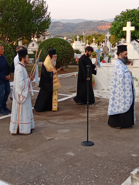 Τα τελευταία χρόνια ο σεβασμιώτατος Μητροπολίτης μας κ.κ. Ευστάθιος έχει καθιερώσει την τέλεση του Εσπερινού της Πεντηκοστής στον κοιμητηριακό Ναό του Αγίου Γεωργίου Ψυχικού κι εν συνεχεία τη λιτάνευση της εικόνας της Πεντηκοστής στο χώρο του κοιμητηρίου συνοδεία της Φιλαρμονικής Δήμου Σπάρτης. Έτσι και φέτος πραγματοποιήθηκε ο Εσπερινός της Πεντηκοστής από τον Μητροπολίτη μας και τους αρμόδιους ιερείς του Οσίου Νίκωνος Σπάρτης, πατέρες Αθανάσιο Σπηλιώτη και Κωνσταντίνο Σκάλτσα, καθώς κι από τον πρωτοψάλτη Θεόδωρο Τσαγκαρούλη με τους βοηθούς του.