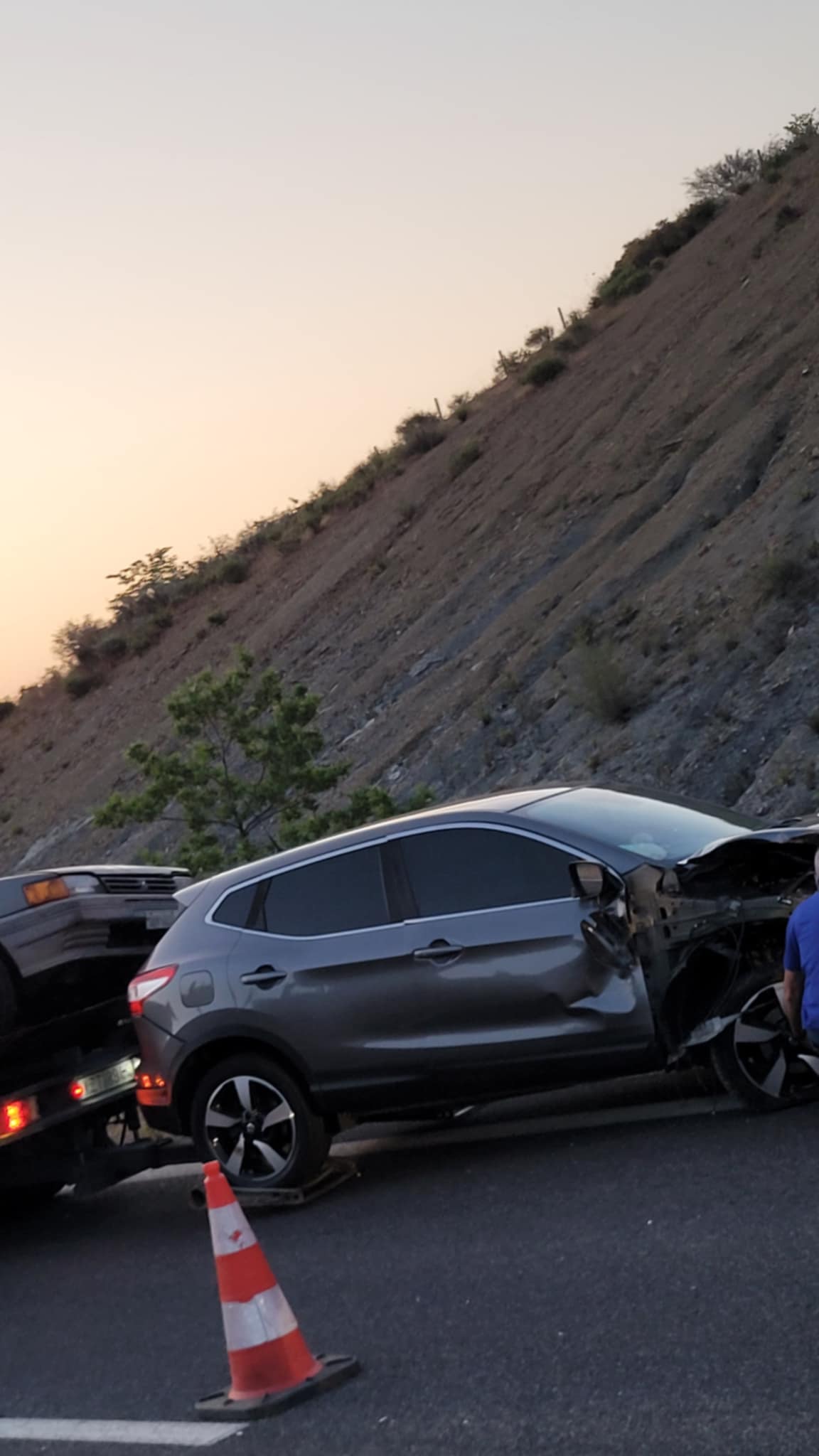 Αμφότερα τα αυτοκίνητα υπέστησαν εκτεταμένες υλικές ζημιές, ενώ ειδικά το ένα μετετράπη σε άμορφη μάζα σιδερικών. Χαρακτηριστικό της σφοδρότητας ήταν ότι τα εμπλεκόμενα ΙΧ κατέληξαν σε απόσταση άνω των 20 μέτρων μεταξύ τους, το ένα στη μέση και το άλλο στην άκρη του οδοστρώματος, πάνω σε προστατευτικές μπάρες.
