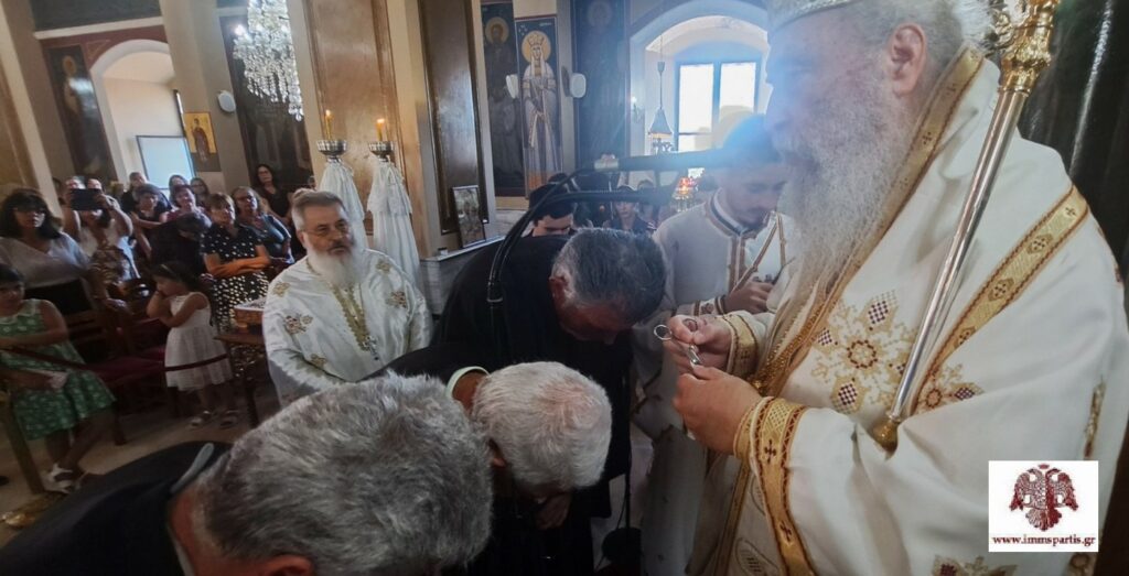 Ο σεβασμιώτατος ευχαρίστησε τον π. Γεώργιο και όλους τους ενορίτες για την αγάπη και τις ευχές τους, ενώ στη συνέχεια προέβη στην απονομή του οφίκιου του οικονόμου στον π. Γεώργιο, ευχόμενος να συνεχίσει «την ευδόκιμη διακονία του, με γνώμονα την πίστη στον Θεό, την αγάπη προς τον συνάνθρωπο, τη συγγνώμη και τη μετάνοια».