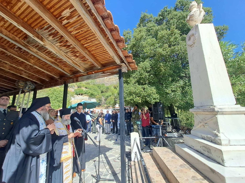 Η ημέρα ξεκίνησε με επίσημη δοξολογία στον Ιερό Ναό Κοιμήσεως της Θεοτόκου, χοροστατούντος του σεβασμιωτάτου Μητροπολίτη Μάνης κ. Χρυσοστόμου Γ’. Ακολούθησαν επιμνημόσυνη δέηση στον χώρο του ηρώου και κατάθεση στεφάνων από τις πολιτικές, στρατιωτικές και τοπικές αρχές.