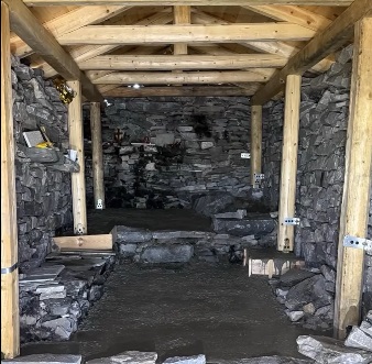 Τις προηγούμενες ημέρες ισχυροποιήθηκε η νέα στέγη με την επικάλυψη πλακών που προσιδιάζουν στο περιβάλλον, ώστε να δίνεται και το απαραίτητο βάρος για την αντοχή της, στις ισχυρές πιέσεις του ανέμου αλλά και για την καλύτερη στεγάνωσή της.