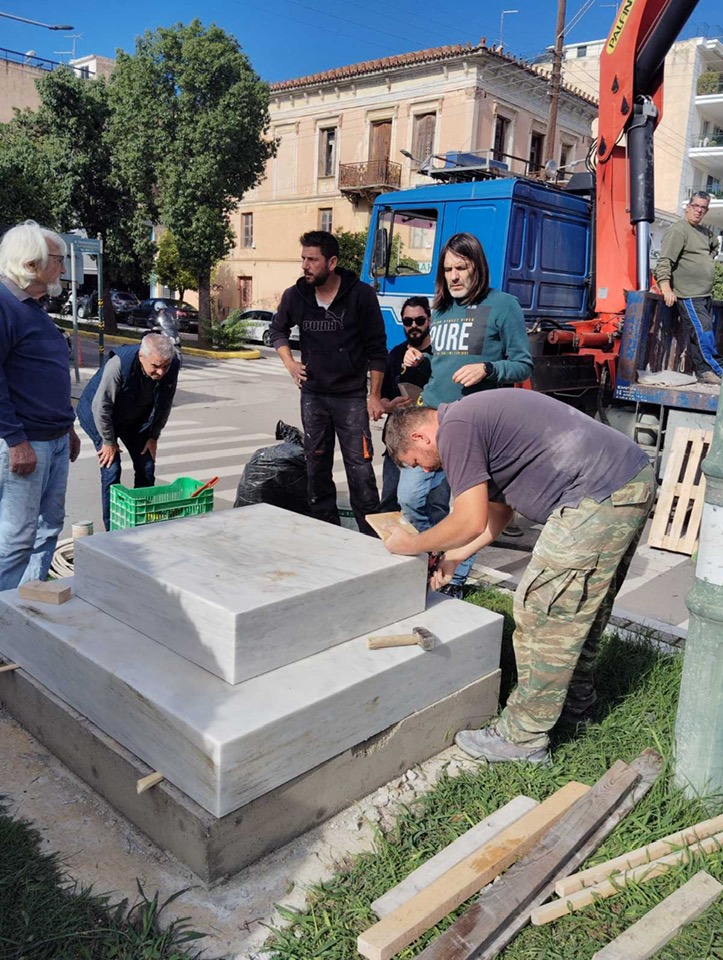 Οι πρόδρομες εργασίες για την εγκατάσταση της ορειχάλκινης προτομής του αείμνηστου ήρωα της Αντίστασης, Χρήστου Καρβούνη, έργο του διακεκριμένου Σπαρτιάτη γλύπτη, Δημοσθένη Τζανάκου, έγιναν την Πέμπτη (6/11). Η προτομή θα τοποθετηθεί, όπως είχε αποφασιστεί από το 2023, στη νησίδα στη συμβολή των οδών Κωνσταντίνου Παλαιολόγου και Όθωνος Αμαλίας, μπροστά από το σημείο όπου παλαιότερα βρισκόταν η κλινική-οικία του τιμώμενου, προτού αυτή κατεδαφιστεί. Συγκεκριμένα, τεχνικοί προέβησαν στο στήσιμο της μαρμάρινης βάσης-πλατφόρμας και της αφιερωματικής στήλης που θα πλαισιώνει το άγαλμα, παρουσία του ίδιου του καλλιτέχνη κι εκπροσώπων της Δημοτικής Αρχής, όπως ο πρόεδρος του Δημοτικού Συμβουλίου, Στέφανος Βρεττάκος και ο σύμβουλος δημάρχου, Χρήστος Μακρής. Σύμφωνα με πληροφορίες του «ΛΤ», ο ορειχάλκινος ανδριάντας αναμένεται να εγκατασταθεί εντός των επόμενων ημερών, ενώ τα λαμπρά αποκαλυπτήρια προγραμματίζονται για το τελευταίο δεκαήμερο του Νοεμβρίου, πιθανότατα εντός του διημέρου 22-23/11, παραμονές του εορτασμού του Οσίου Νίκωνος.