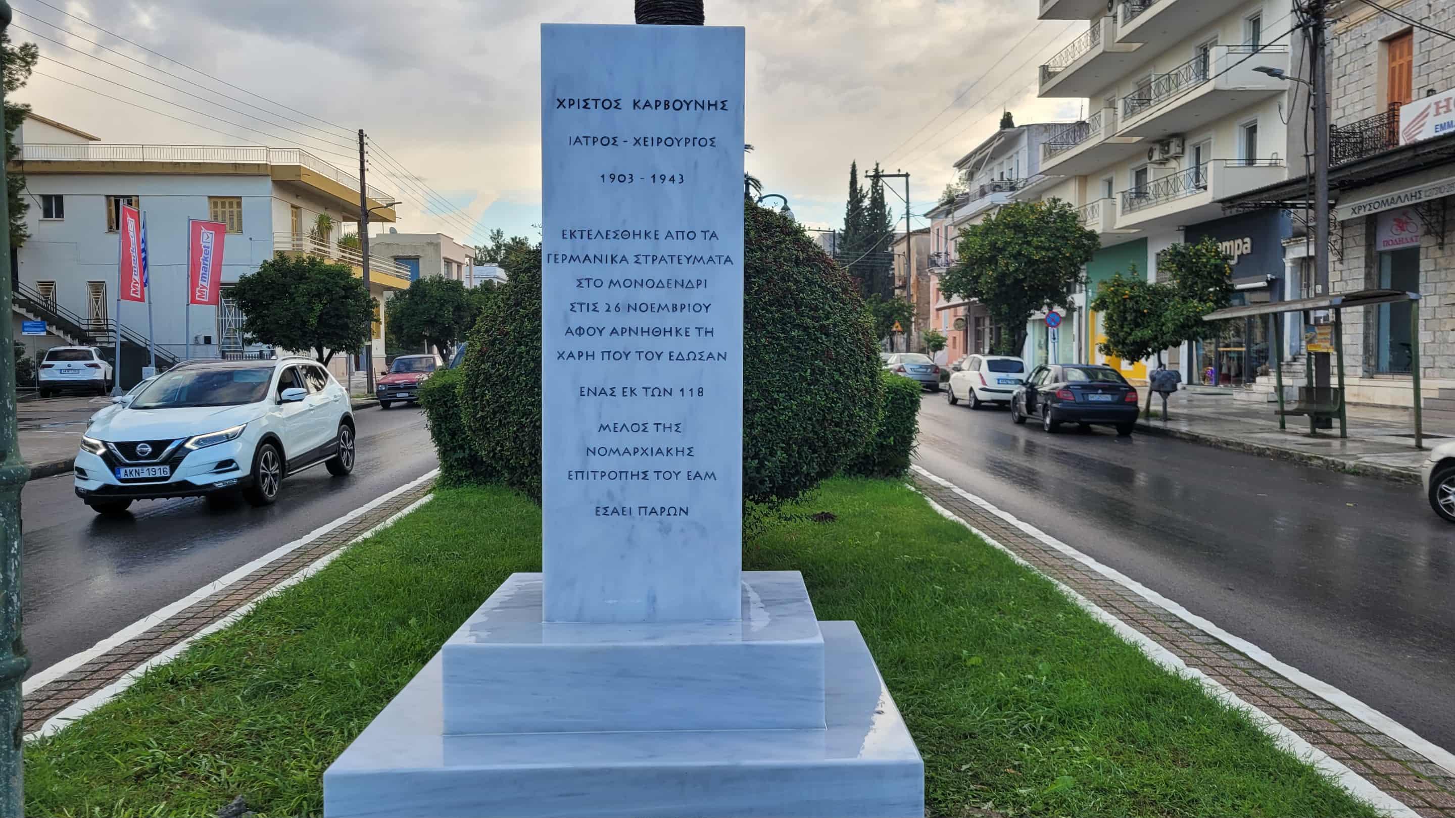 Ο Χρήστος Καρβούνης (1903-1943) ήταν μεταξύ των 118 Εθνομαρτύρων που εκτελέστηκαν στο Μονοδένδρι από τους Γερμανούς κατακτητές, στις 26 Νοεμβρίου 1943. Η προσφορά του στη λακωνική κοινωνία ως γιατρός και πολιτική προσωπικότητα, που μαχόταν για την κοινωνική δικαιοσύνη και την εδραίωση της δημοκρατίας, αποτελεί πηγή έμπνευσης για τη σημερινή κοινωνία.