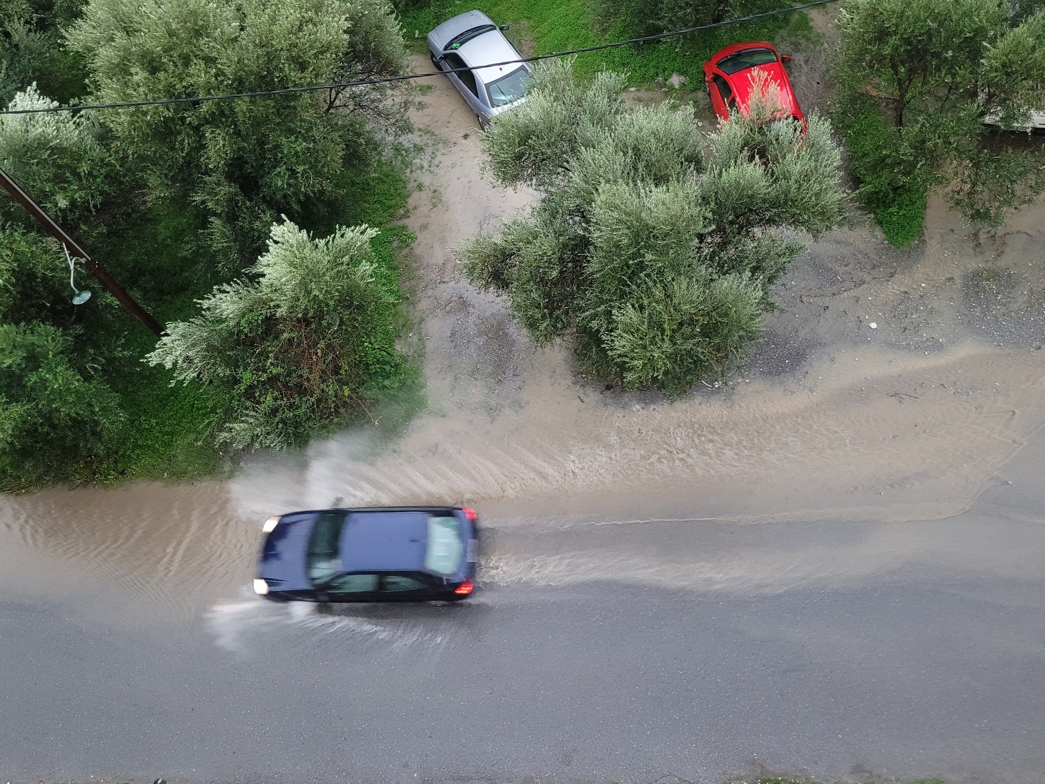 Αναλυτικά, ανέφερε: «Μια ακόμα όμορφη λίμνη με την παραμικρή βροχή Λεωνίδου και Τριακοσίων, όπου φθάνουν τα νερά από τη Μαγούλα μετά την.... αποκατάσταση της Λεωνίδου! Μήπως να δει κάποιος μηχανικός του Δήμου και να συμβουλέψει τη Δημοτική Αρχή για τις αναγκαίες επεμβάσεις; Μήπως το γνωρίζουμε το πρόβλημα από παλαιότερα; Μήπως να κινούμαστε με βάρκες καλύτερα;»