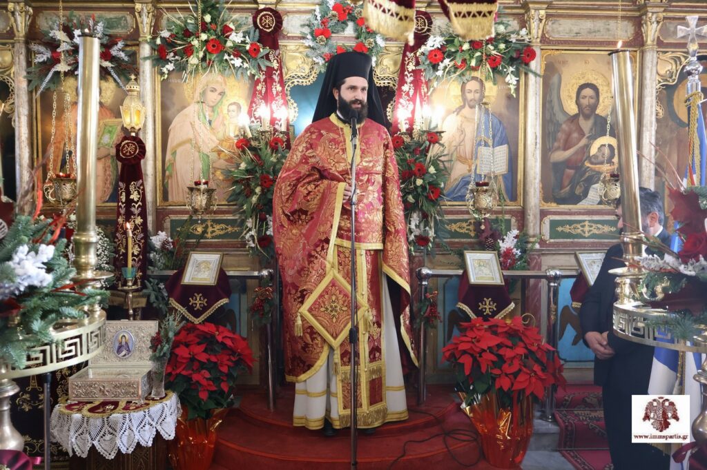 Από την πλευρά του, ο σεπτός Ποιμενάρχης κ. Ευστάθιος επαίνεσε τον π. Λάζαρο και τον κ. Δαβάκη για τις πρωτοβουλίες που ανέλαβαν, καθώς και όλους όσοι βοήθησαν με οποιονδήποτε τρόπο στην αποκατάσταση του ναού. Μάλιστα, τόνισε ότι «τέτοιες δυσκολίες τις επιτρέπει πολλές φορές ο Θεός για να ενεργοποιηθούν αδρανείς δυνάμεις και να για να ενωθεί μία κοινωνία κάτω από ένα κοινό σκοπό». Ιδιαίτερες ευχαριστίες εξέφρασε ο Ιεράρχης προς τον κ. Αθανάσιο Μαρτίνο, «που αποτελεί πολύτιμο στήριγμα, με το πολυποίκιλο φιλανθρωπικό έργο του», για το Οικουμενικό Πατριαρχείο, για άλλα Πατριαρχεία, την Εκκλησία της Ελλάδος, το Άγιο Όρος και άλλους φορείς. Μάλιστα, η τοπική Εκκλησία θα τιμήσει καταλλήλως τον κ. Μαρτίνο όταν ολοκληρωθεί και το μεγάλο έργο που έχει αναλάβει με αποκλειστική χορηγία του, αυτό της ανακαίνισης εσωτερικά και εξωτερικά του Μητροπολιτικού Ναού Ευαγγελιστρίας και της ανακαίνισης της Στέγης Νεότητας της ΙΜΜΣ.