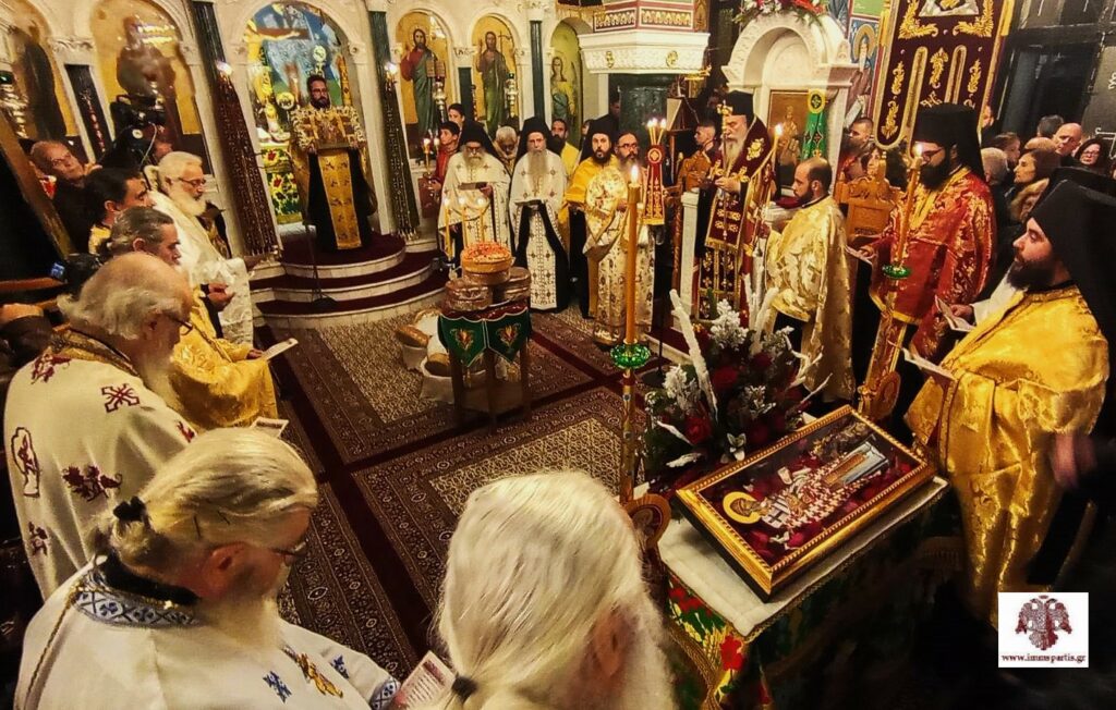 Το απόγευμα της παραμονής της εορτής, Πέμπτη (11/12), τελέσθηκε ο Μέγας πανηγυρικός Αρχιερατικός Εσπερινός μετ’ αρτοκλασίας, χοροστατούντος του σεβασμιωτάτου Μητροπολίτη κ. Ευσταθίου, με τη συμμετοχή πλειάδας κληρικών από την ευρύτερη περιοχή.