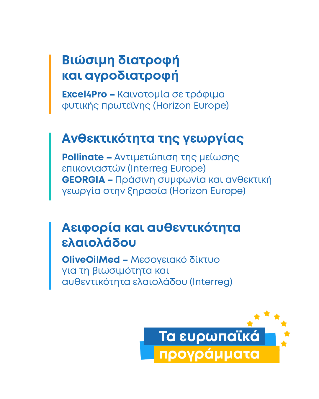 - Excel4Pro – Καινοτομία σε τρόφιμα φυτικής πρωτεΐνης (Horizon Europe)