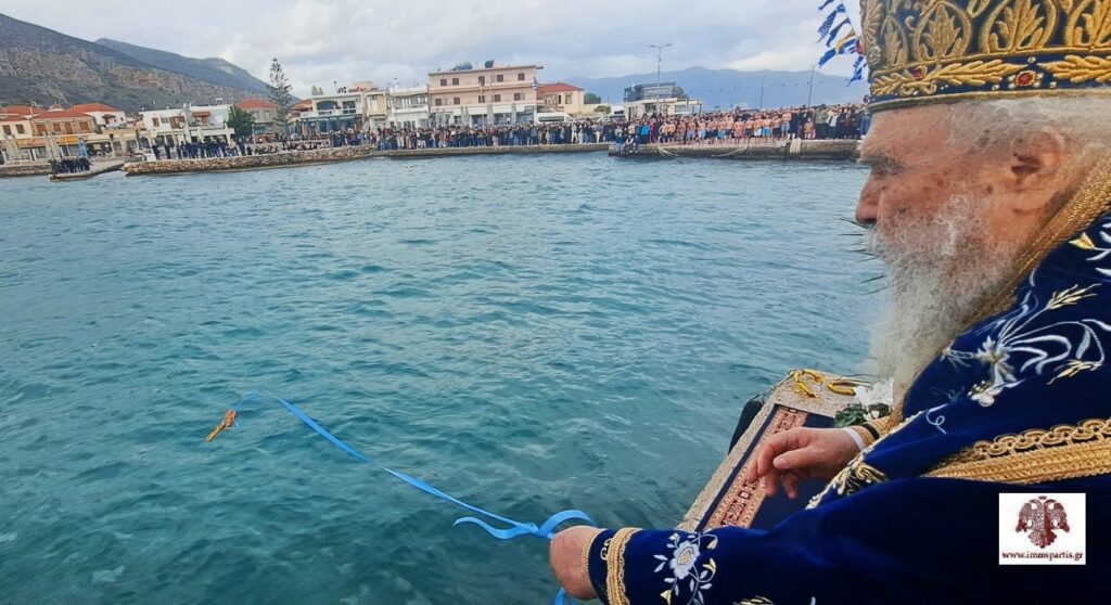 Μετά την Απόλυση, προπορευόμενης της Φιλαρμονικής και των ιερών λαβάρων, σχηματίσθηκε λιτανευτική πομπή έως το λιμάνι της πόλης, όπου τελέσθηκε ο Αγιασμός των υδάτων και η κατάδυση του Τιμίου Σταυρού από τον σεβασμιώτατο, ενώπιον πλήθους πιστών από την ευρύτερη περιοχή της Λακωνίας.