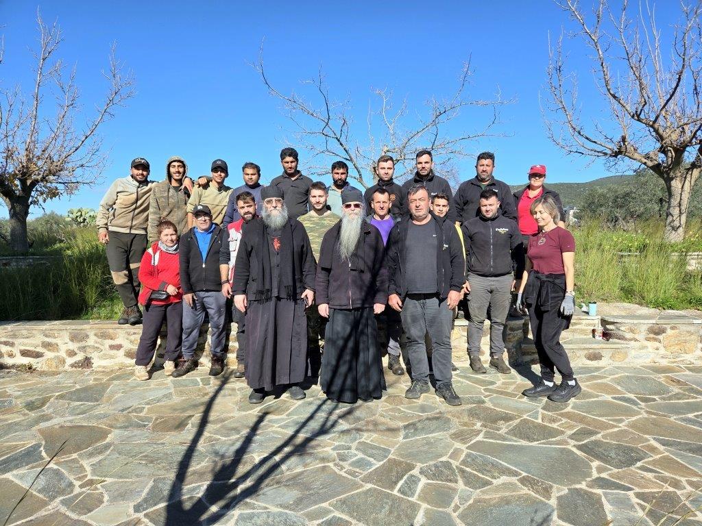 Ανταποκρινόμενοι στο κάλεσμα της Μονής, την Πέμπτη 15 Ιανουαρίου, προσέφεραν αφιλοκερδώς την εργασία τους, τα μηχανήματα και τα εργαλεία τους, αποδεικνύοντας έμπρακτα το υψηλό αίσθημα εθελοντισμού και αγάπης προς το ιστορικό μοναστήρι.