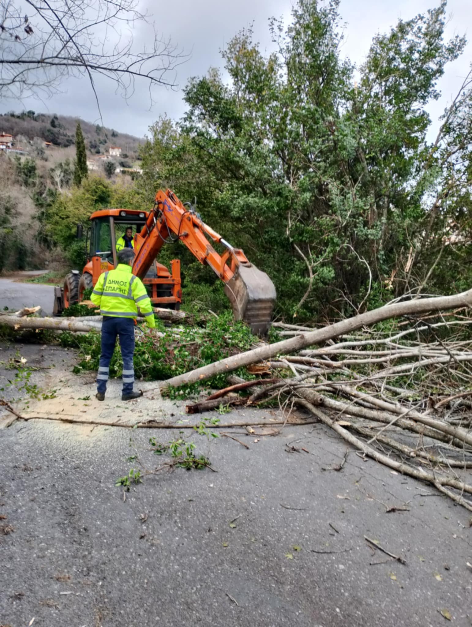 Άμεση ήταν και η παρέμβαση στην Κοινότητα Γεωργιτσίου, όπου η πτώση δέντρων είχε δημιουργήσει προβλήματα στην κυκλοφορία. Οι εργαζόμενοι της Υπηρεσίας προχώρησαν στον τεμαχισμό και την απομάκρυνση των κλαδιών, αποδίδοντας τον δρόμο εκ νέου στην κυκλοφορία.