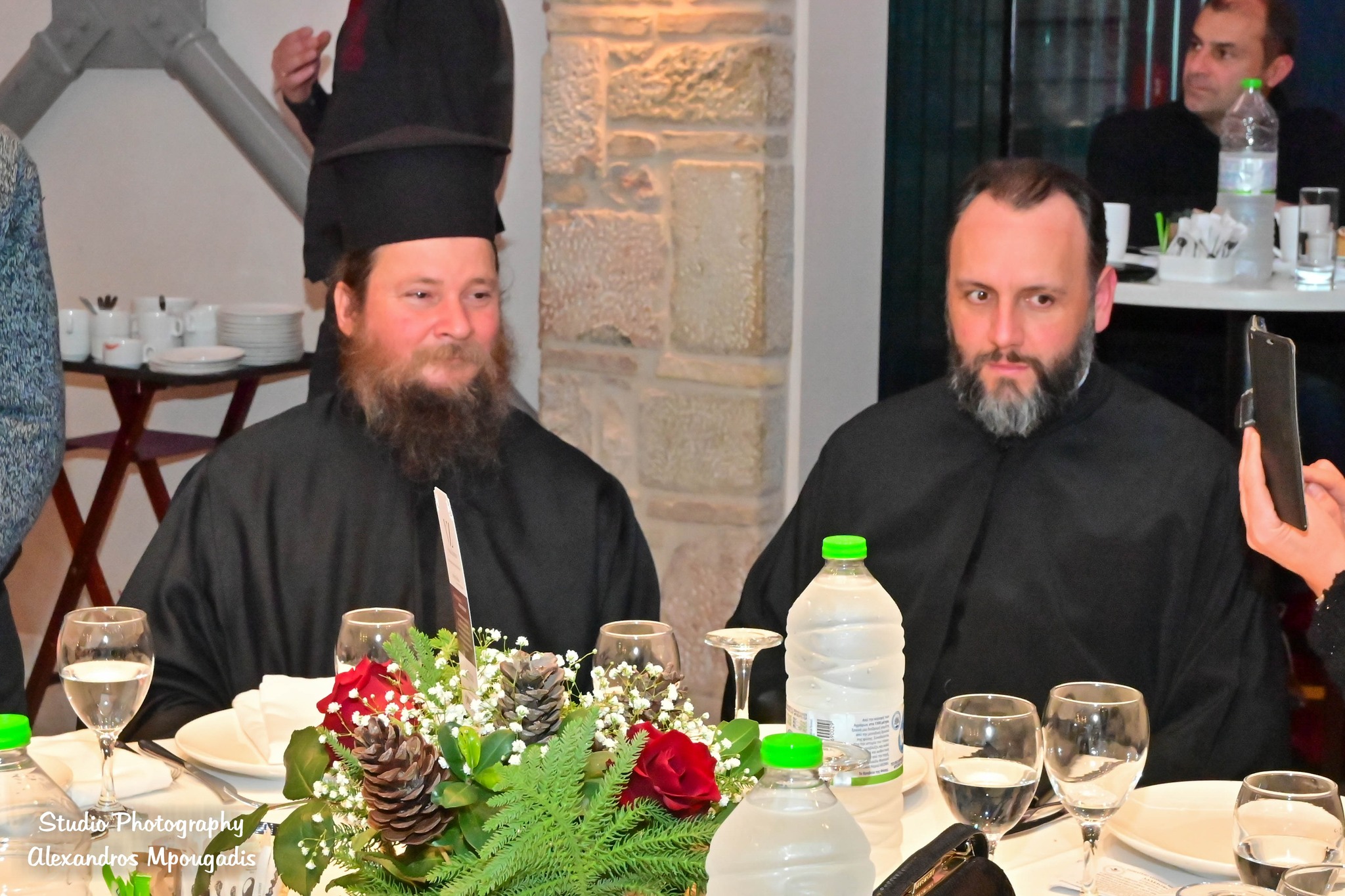 Την κοπή της πίτας ευλόγησαν, ως εκπρόσωποι του Σεβασμιωτάτου Μητροπολίτη Μονεμβασίας και Σπάρτης κ.κ. Ευσταθίου, οι ιερείς Λάζαρος Σκάγκος, Σεραφείμ Κοσμάς και Συμεών Παπαγεωργίου, μεταφέροντας τις ευχές της Εκκλησίας για υγεία, δύναμη και ενότητα.