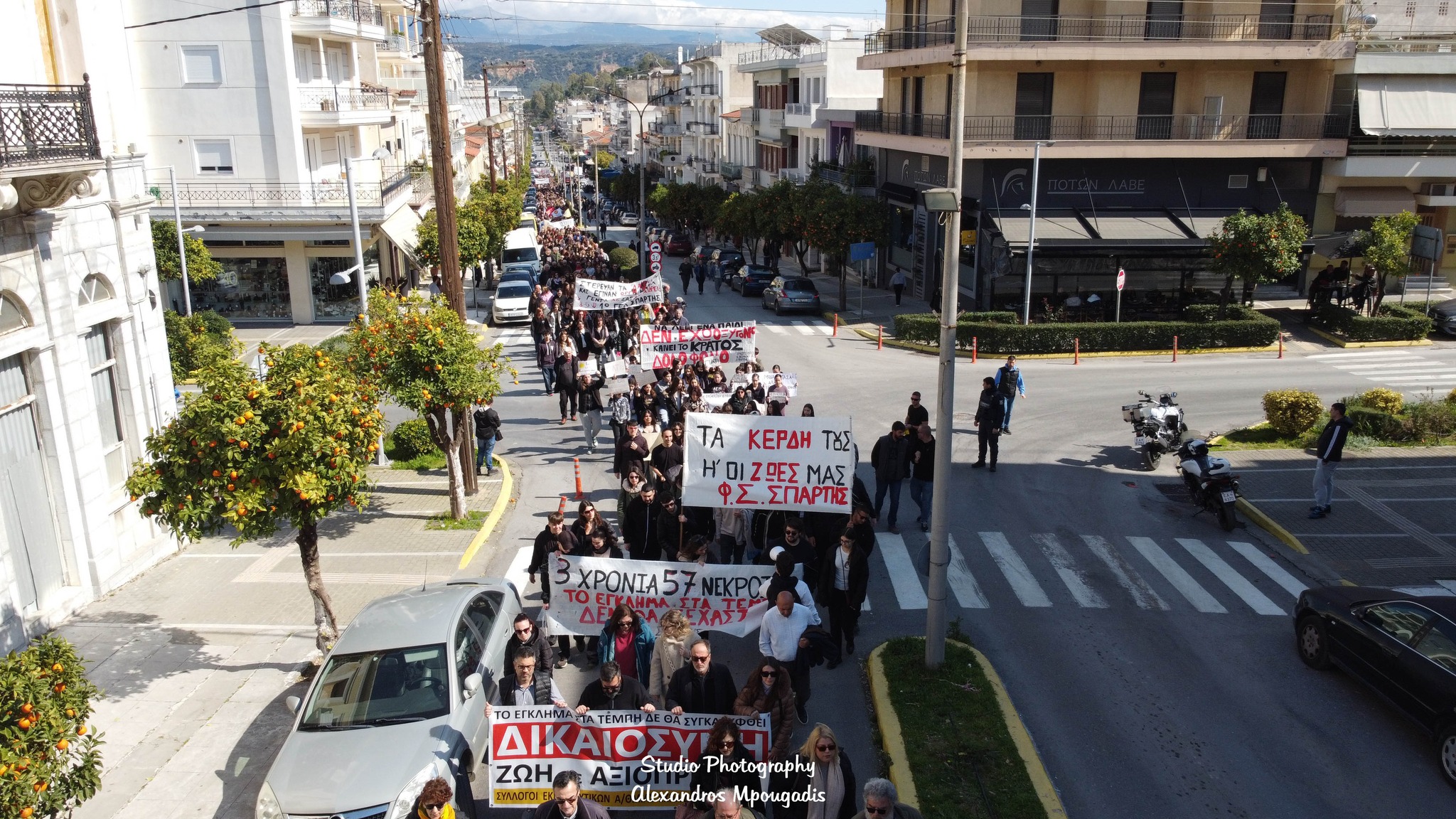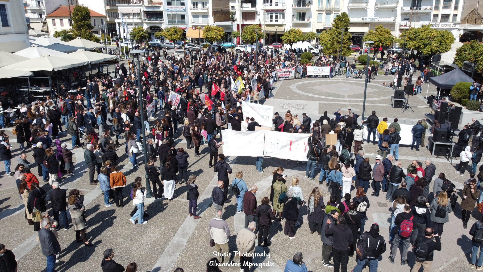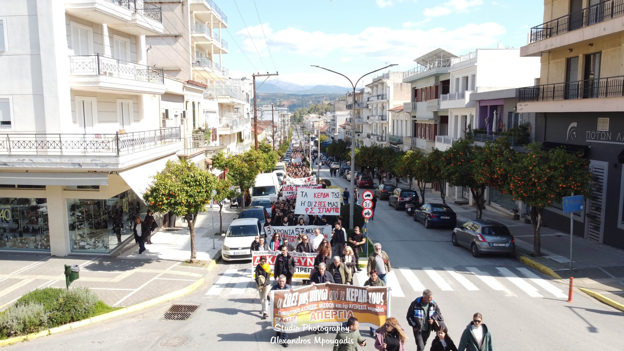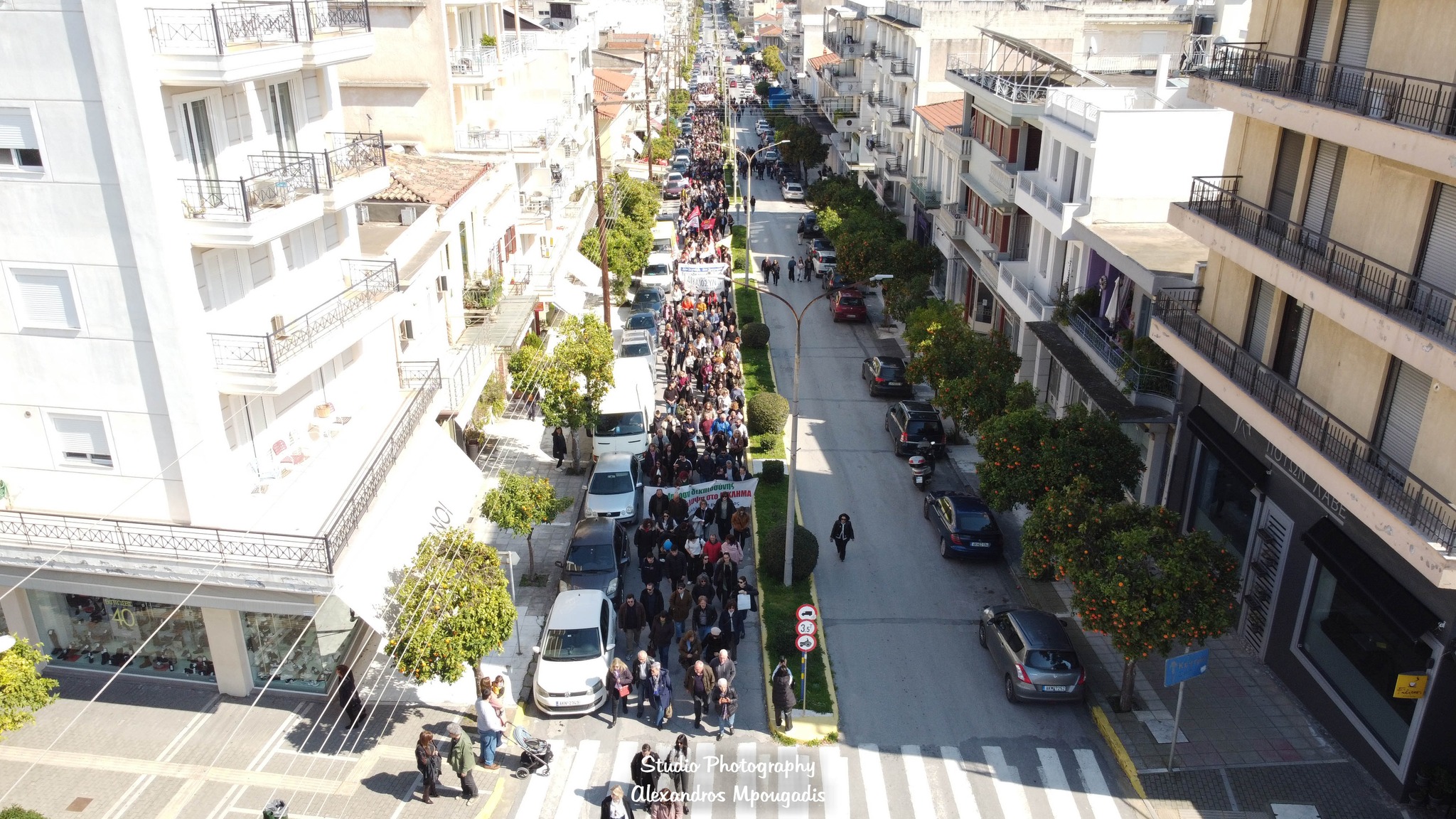 Μετά το πέρας των ομιλιών ακολούθησε πορεία στους κεντρικούς δρόμους της πόλης, με τη διαδρομή να περνά από τις Λεωφόρους Παλαιολόγου και Λυκούργου, και τους πολίτες να δημιουργούν μια μεγάλη ανθρώπινη αλυσίδα που εκτεινόταν σε μεγάλο μήκος. Οι εικόνες από ψηλά ανέδειξαν τον όγκο της συμμετοχής, με τους διαδηλωτές να κινούνται οργανωμένα και ειρηνικά.