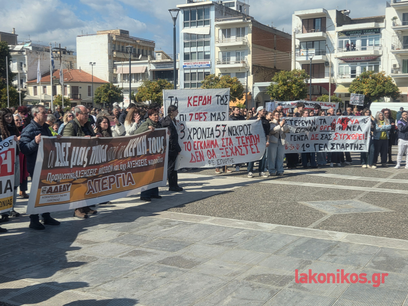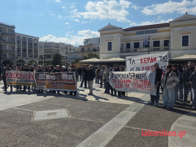 Με ιδιαίτερα αυξημένη συμμετοχή πραγματοποιήθηκε, το μεσημέρι του Σαββάτου (28/2), η συγκέντρωση μνήμης και διαμαρτυρίας στη Σπάρτη για τη συμπλήρωση τριών ετών από το τραγικό σιδηροδρομικό δυστύχημα στα Τέμπη. Το κέντρο της πόλης γέμισε από πολίτες κάθε ηλικίας, εργαζόμενους, μαθητές και φοιτητές, που ανταποκρίθηκαν στο κάλεσμα φορέων και σωματείων, στέλνοντας ηχηρό μήνυμα μνήμης και διεκδίκησης.
