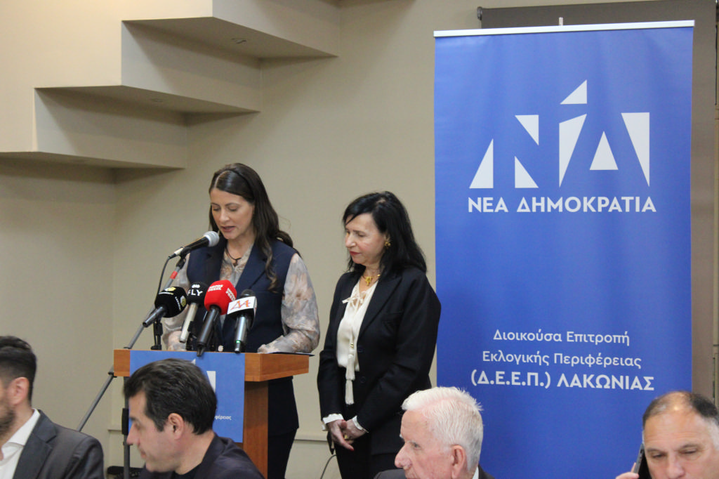 Χαιρετισμό απηύθυναν ο πρόεδρος της ΔΕΕΠ Λακωνίας, Αντώνιος Κοκκονός και οι πρόεδροι των ΔΗΜΤΟ Ευρώτα, Ανατολικής Μάνης, Μονεμβασίας και Σπάρτης, Ιωάννης Θεοδωρακάκος, Κομνηνός Δεμέστιχας, Παναγιώτα Μαραβέλια και Αδαμαντία Κωνστιάντου, αντίστοιχα. Τοποθετήσεις πραγματοποίησαν επίσης οι Θ. Δαβάκης, Ν. Κρητικός, Θ. Βερούτης, Σπ. Τζινιέρης, Δ. Βέρδος και Γ. Κυριακούλιας. Παράλληλα, αναγνώστηκαν μηνύματα της εκπροσώπου της ΝΔ στο Τμήμα Γυναικών του Ευρωπαϊκού Λαϊκού Κόμματος και μέλους του ΔΣ της ΕΡΤ, Χρυσαυγής Ατσιδάκου, καθώς και του δημάρχου Σπάρτης, Μιχάλη Βακαλόπουλου.