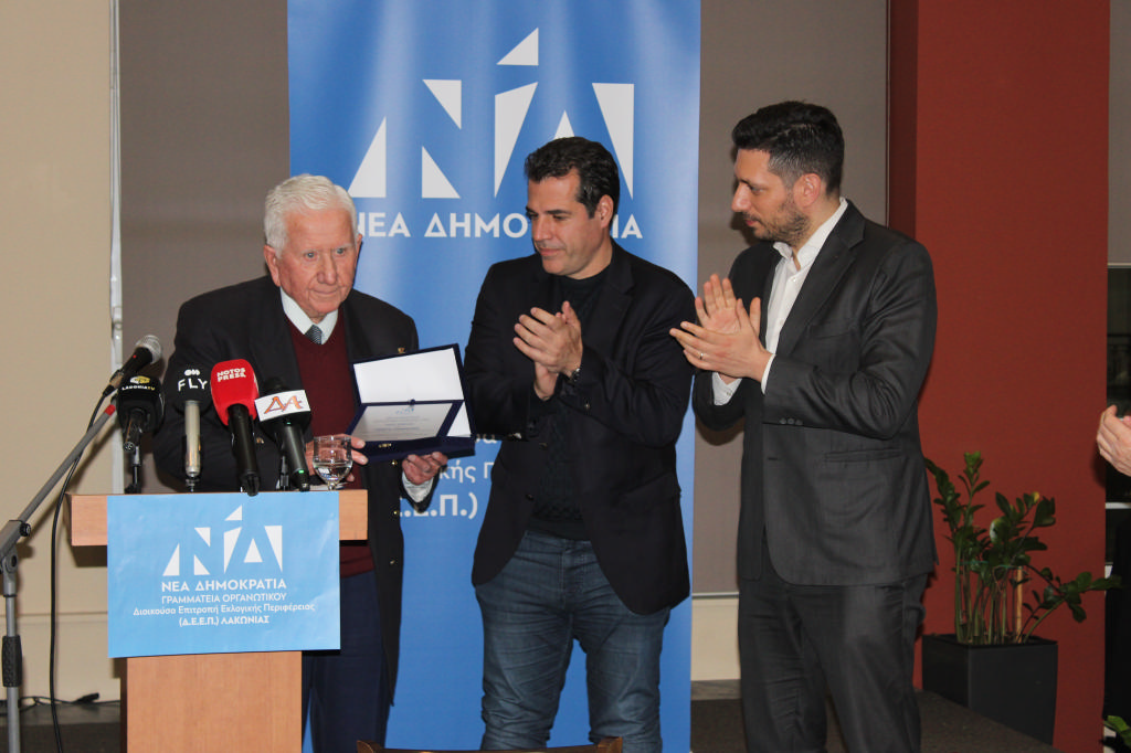 Την τιμητική πλακέτα απένειμαν οι Αθανάσιος Πλεύρης και Κωνσταντίνος Κυρανάκης.
