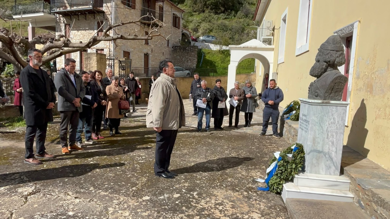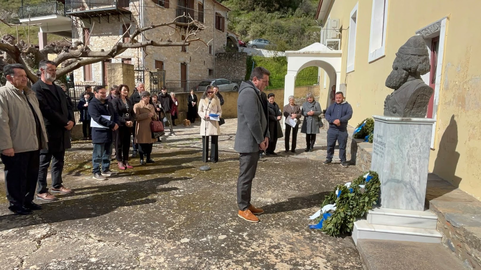 Στην προτομή του Ι. Καλομοίρη, αποδόθηκαν τιμές με την κατάθεση στεφάνων από: Τον αντιδήμαρχο Δημήτριο Γιαννόπουλο, εκ μέρους του Δήμου Σπάρτης, τον αντιπρόεδρο του Συνδέσμου Εφέδρων Αξιωματικών Λακωνίας, Παναγιώτη Κυριακούλια, τον πρόεδρο της Κοινότητας Βορδόνιας, Κωνσταντίνο Κούμαρη, την πρόεδρο της Κοινότητας Σουστιάνων, Μαρία Τσάκωνα και τον πρόεδρο της Κοινότητας Καστορείου, Χρήστο Βασιλείου.