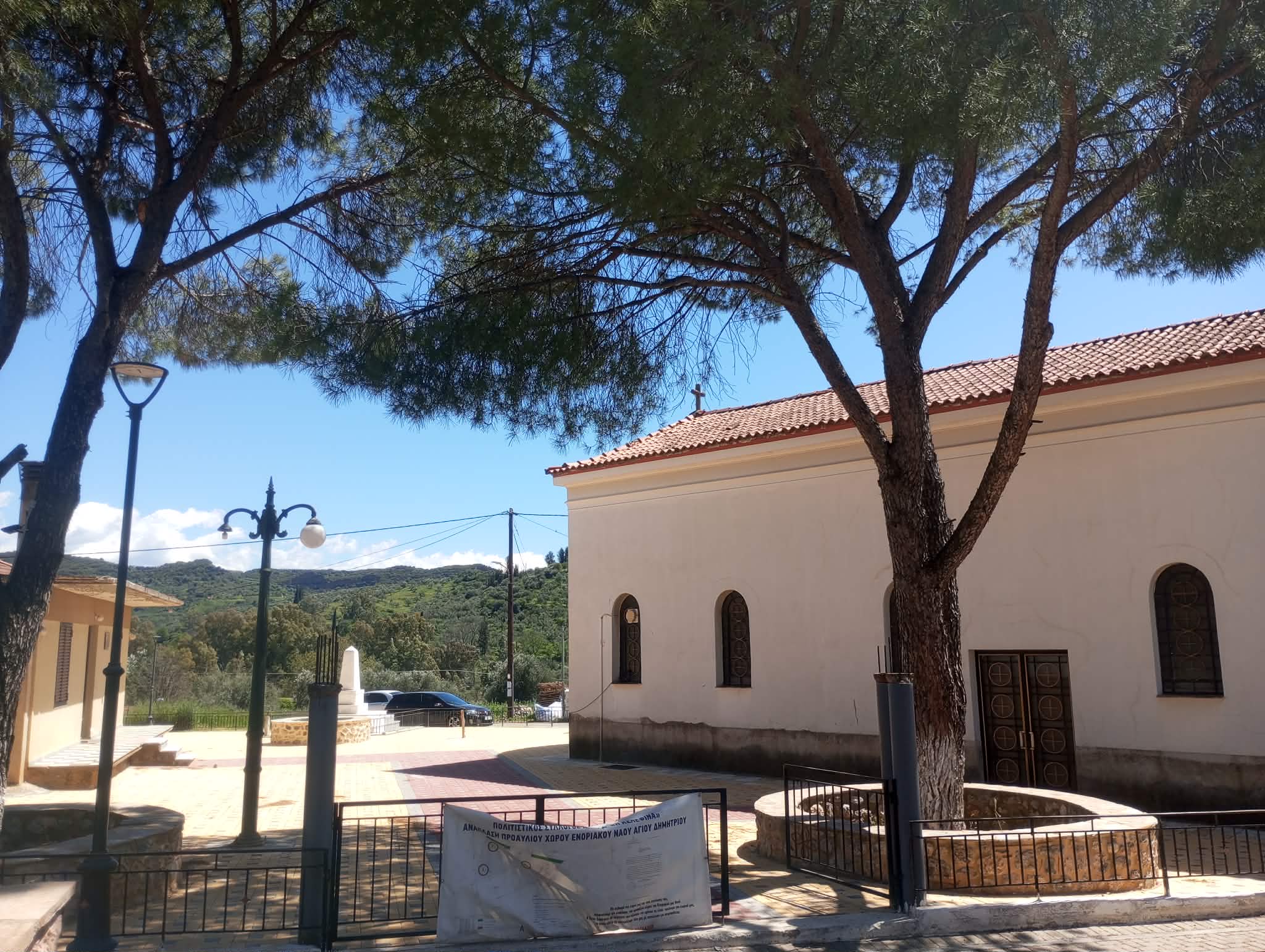 Εκεί όπου μέχρι πρότινος απλωνόταν ένας «συμβατικός», χωμάτινος και ανοργάνωτος χώρος, σήμερα αναδεικνύεται ένα καλαίσθητο και λειτουργικό προαύλιο, που σέβεται το φυσικό περιβάλλον και αναβαθμίζει ουσιαστικά τον χαρακτήρα του ναού. Μια όμορφη, ανθρώπινη «γωνιά», που έρχεται να γίνει σημείο συνάντησης, χαλάρωσης και καθημερινής συναναστροφής για μικρούς και μεγάλους, αποκτώντας πλέον ρόλο κομβικό για τη ζωή του οικισμού και αποτελώντας ουσιαστικά τον δεύτερο οργανωμένο πυρήνα συγκέντρωσης, μετά την κεντρική πλατεία στο νότιο τμήμα του χωριού.