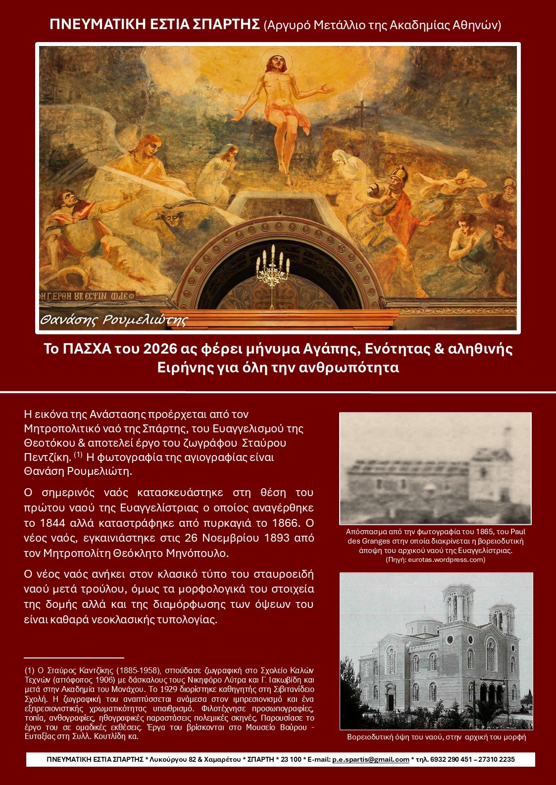 *Αφορμή, έμπνευση και πηγή για το άρθρο αυτό στάθηκε η φετινή ευχετήρια πασχαλινή κάρτα της Πνευματικής Εστίας Σπάρτης.