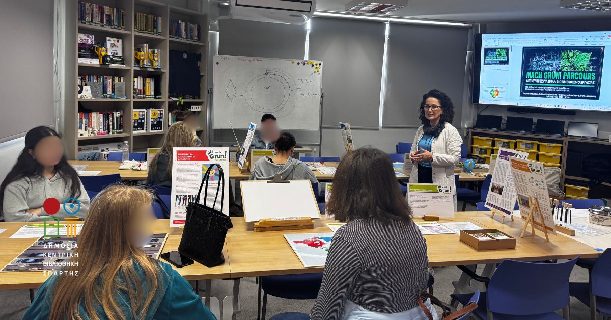 Μια ξεχωριστή εκπαιδευτική δράση με επίκεντρο την αειφορία και τη βιωματική μάθηση φιλοξενήθηκε στη Δημόσια Κεντρική Βιβλιοθήκη Σπάρτης, φέρνοντας τους μαθητές σε άμεση επαφή με σύγχρονες περιβαλλοντικές προκλήσεις και πρακτικές.
