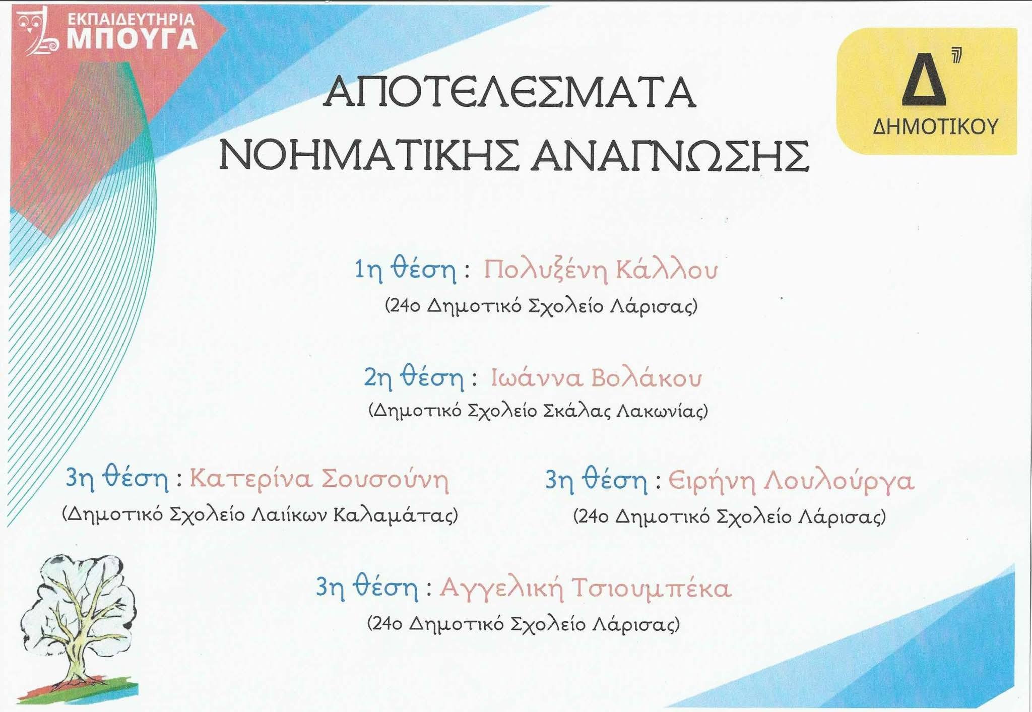 Οι μαθητές του σχολείου κατάφεραν να ξεχωρίσουν ανάμεσα σε πλήθος συμμετοχών από όλη τη χώρα, κατακτώντας τρεις διακρίσεις σε διαφορετικές κατηγορίες. Ο Ντάριους Σεβάστιαν Γκεοργκίου απέσπασε το 1ο βραβείο γραπτού λόγου με το έργο «Η περιέργεια, πηγή του ταξιδιού μου», ένα κείμενο που αναδεικνύει τη δύναμη της αναζήτησης και της εσωτερικής περιπέτειας. Στην ίδια κατηγορία, ο Βασίλης-Χρύσανθος Αλουμανής κατέκτησε το 3ο βραβείο με το έργο «Το μαγικό καράβι στη χώρα των ονείρων», ταξιδεύοντας τη φαντασία σε τόπους όπου το όνειρο και η αφήγηση συναντιούνται. Την τριπλή επιτυχία συμπλήρωσε η Ιωάννα Βολάκου, η οποία διακρίθηκε με το 2ο βραβείο στη νοηματική ανάγνωση, αποδεικνύοντας τη δύναμη της έκφρασης πέρα από τον προφορικό λόγο.