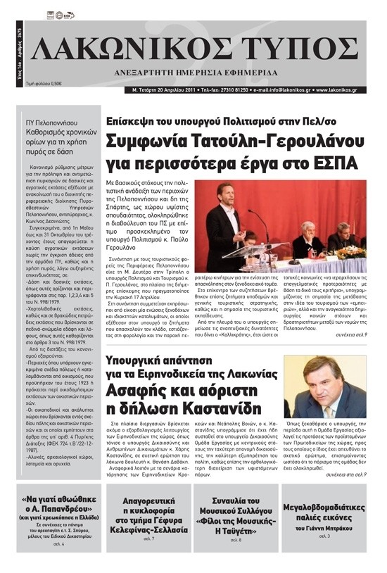 Τελευταία τροποποίηση στις Τετάρτη, 20 Απρίλιος 2011 03:00