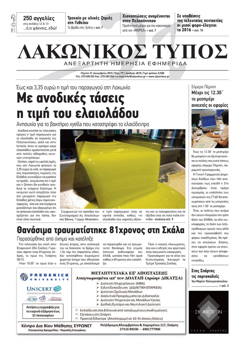 Πέμπτη, 31 Δεκέμβριος 2015 15:07