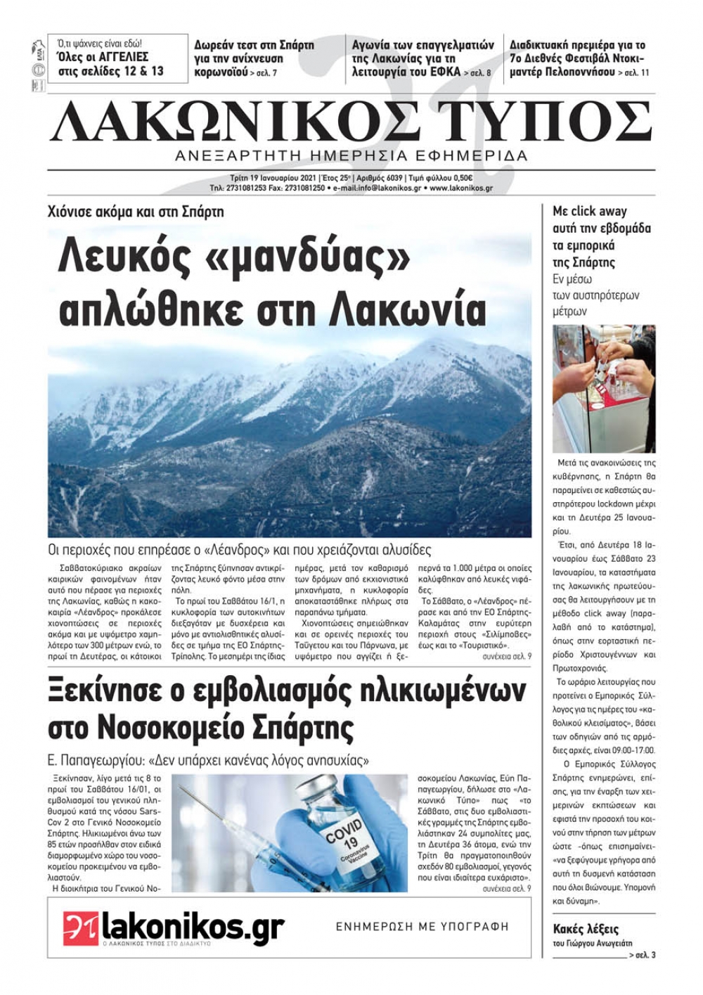 Δευτέρα, 18 Ιανουάριος 2021 20:30