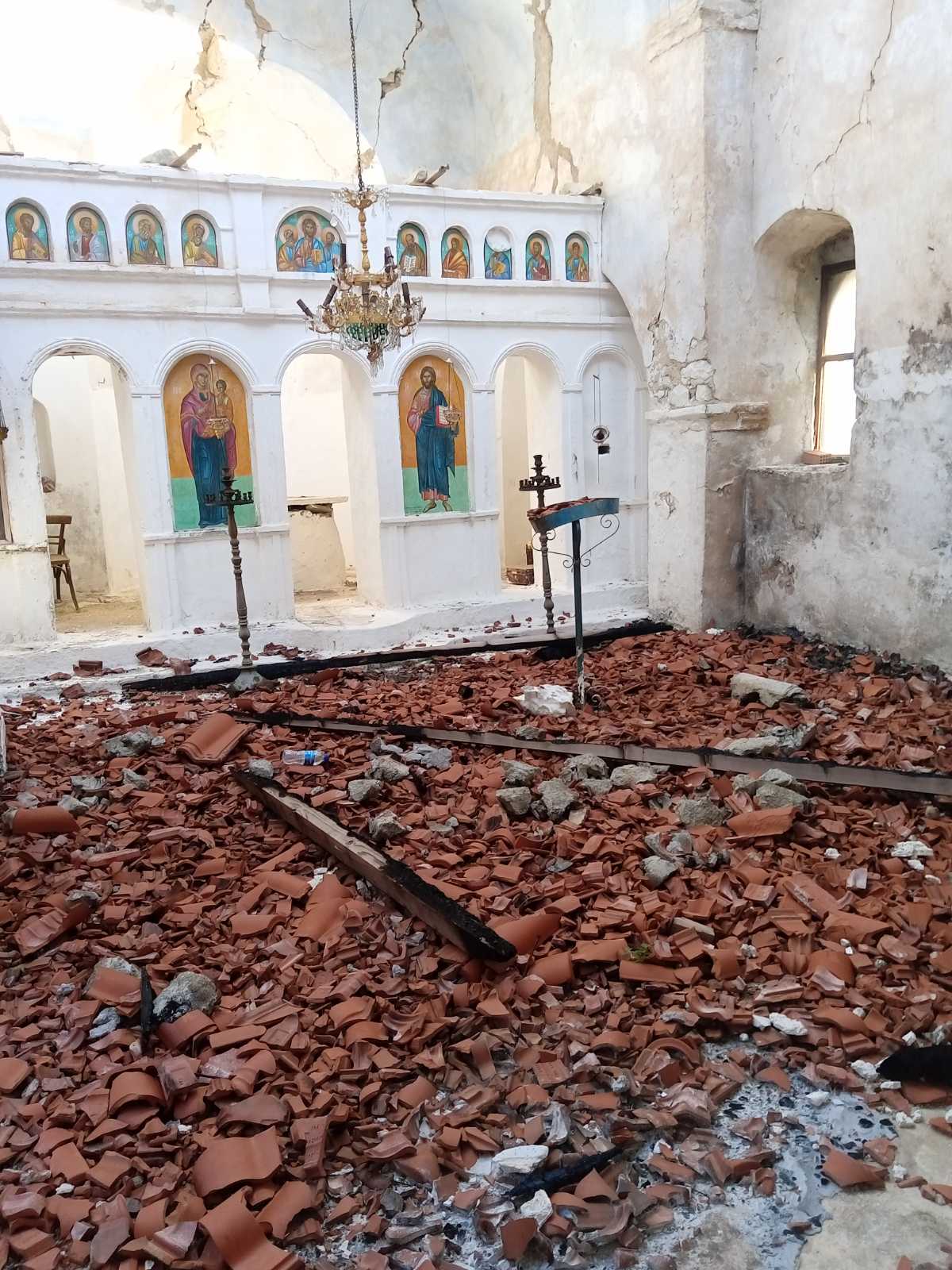 Δεν έχει κουνηθεί ούτε ένα …μπαρουτοκαπνισμένο κεραμίδι!!! Στην πρωτοβουλία μας -πριν ακριβώς ένα χρόνο-, πρωτοβουλία δημοσιοποίησης και ανάδειξης τού θλιβερού θε(ά)ματος που θυμίζει λεηλασίες και καταστροφές από Τούρκους, όπως στην κατεχόμενη Κύπρο μας, φίλοι συμπατριώτες μάς ενημέρωσαν τότε και μας καθησύχασαν ότι έχει επιληφθεί η τοπική μας εκκλησία, η αρχαιολογική υπηρεσία Λακωνίας και οι τοπικές μας αρχές, οπότε όλα θα πάρουν άμεσα το δρόμο τους για σωστική παρέμβαση με στέγαστρο και -στη συνέχεια- πλήρη αποκατάσταση, όπως μας είπαν!… Πέρασε όμως ο χειμώνας και έρχεται ο καινούργιος… και στην πράξη κανένας δεν κούνησε το δαχτυλάκι του, παρ’ ότι έφτασαν σημαντικά κονδύλια για την πυρόπληκτη Μάνη!