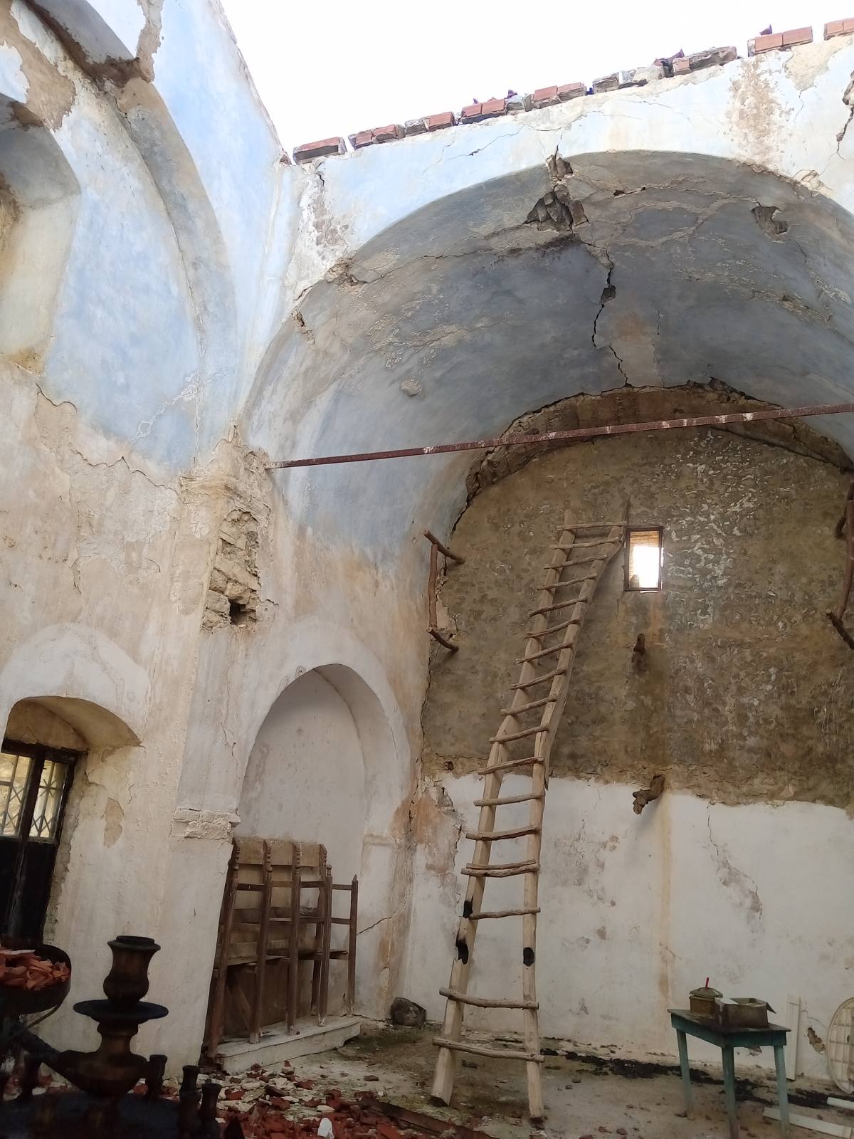 Βρεθήκαμε και πάλι, δεκαπέντε μήνες μετά την καταστροφική πυρκαγιά του Αυγούστου του 2021, με την προσδοκία να αντικρύσουμε σωστικές εργασίες αποκατάστασης ειδικά στον εμβληματικό και μεγαλοπρεπή πέτρινο Ναό του Αγίου Κωνσταντίνου στον Πολυάραβο που είχε υποστεί σοβαρότατες ζημιές (κατάρρευση καμένης στέγης κλπ).