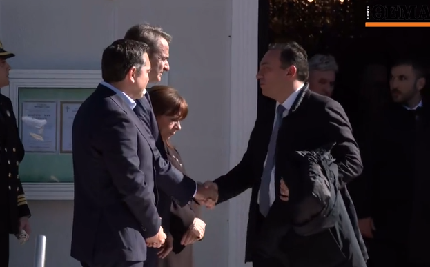 Αξιοσημείωτο είναι όμως και το στιγμιότυπο που προηγήθηκε, με τον Κ. Μητσοτάκη να ανταλλάσει θερμό χαιρετισμό με τον βουλευτή Αρκαδίας και πρώην υφυπουργό Εξωτερικών Κωνσταντίνο Βλάση, ο οποίος τοποθετείται από ορισμένα δημοσιεύματα ως η πρώτη επιλογή της ΝΔ για την Περιφέρεια Πελοποννήσου.