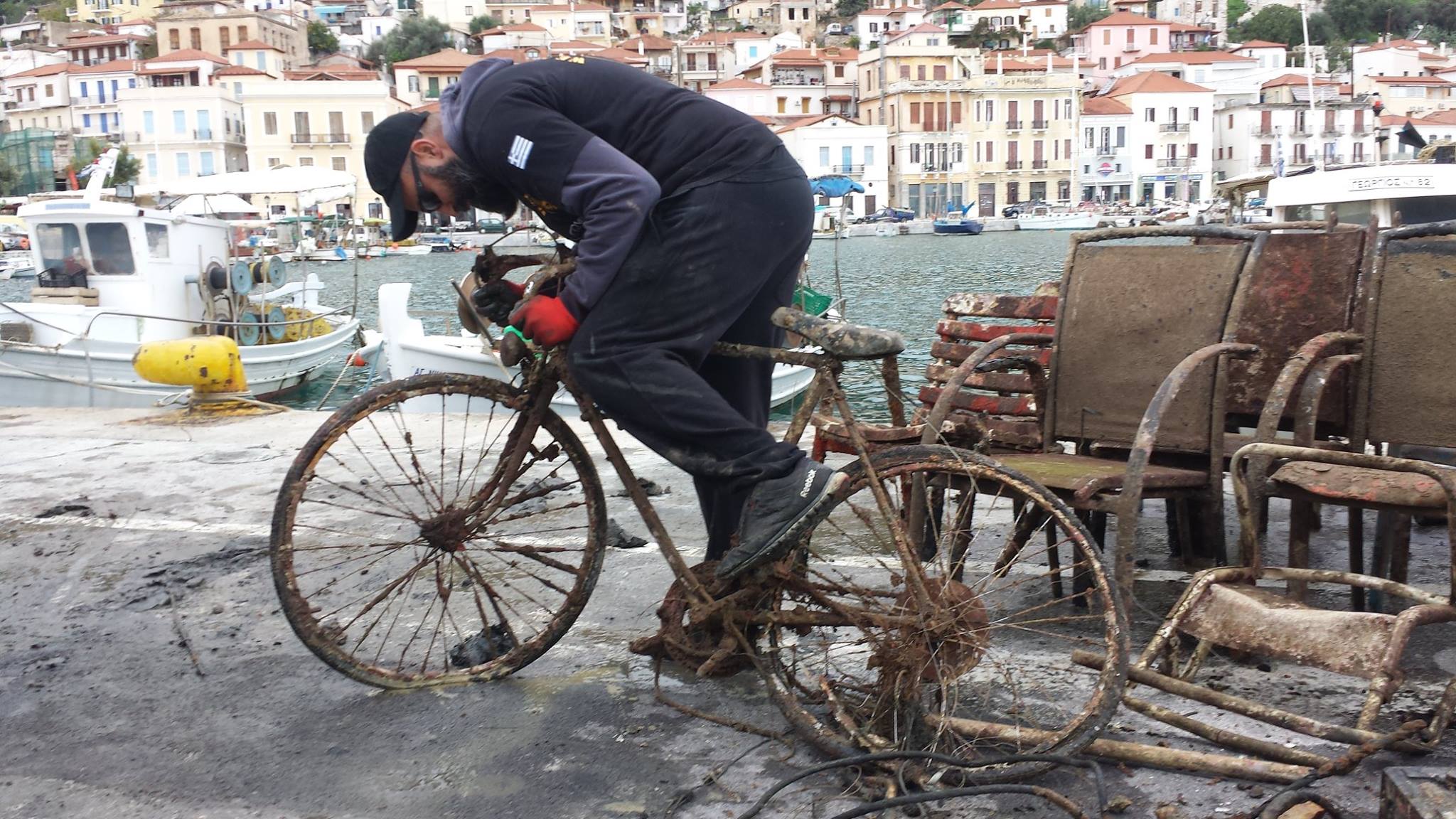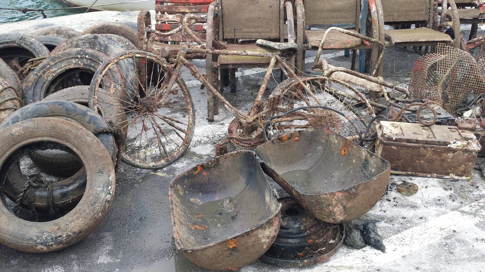 Είναι απίστευτο κι όμως… γυθειατικό! Κωμικοτραγικές εικόνες, βγαλμένες από σενάριο περιβαλλοντικού θρίλερ, αντίκρισαν όσοι βρέθηκαν την Παρασκευή 30/11 στο Γύθειο. Στο πλαίσιο του προγράμματος για την προστασία του θαλάσσιου περιβάλλοντος που υλοποιεί εδώ και έξι χρόνια σε διάφορα μέρη της Ελλάδος, η ομάδα εθελοντών δυτών «We Dive We Clean», σε συνεργασία με το Δημοτικό Λιμενικό Ταμείο Γυθείου, καταδύθηκαν στο λιμάνι της λακωνικής κωμόπολης για να καθαρίσουν τον βυθό. Τα ευρήματα ήταν -από κάθε άποψη- «εντυπωσιακά» και απρόσμενα, που ούτε ο πιο ευφάνταστος νους δεν θα μπορούσε να συλλογιστεί. Οι δύτες περισυνέλεξαν 1.500 κιλά -κάθε λογής- στερεών απορριμμάτων! Πλήθος ελαστικών, καθίσματα, κομμάτια από (πρώην) φωτιστικά σώματα έως… καρότσια σούπερ μάρκετ και ποδήλατα βρίσκονταν συσσωρευμένα για χρόνια στον βυθό!