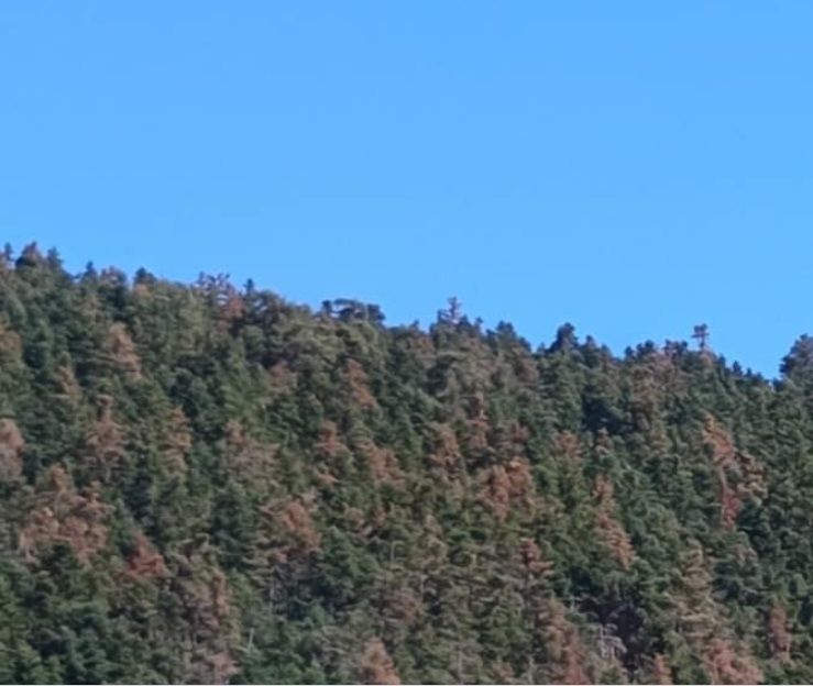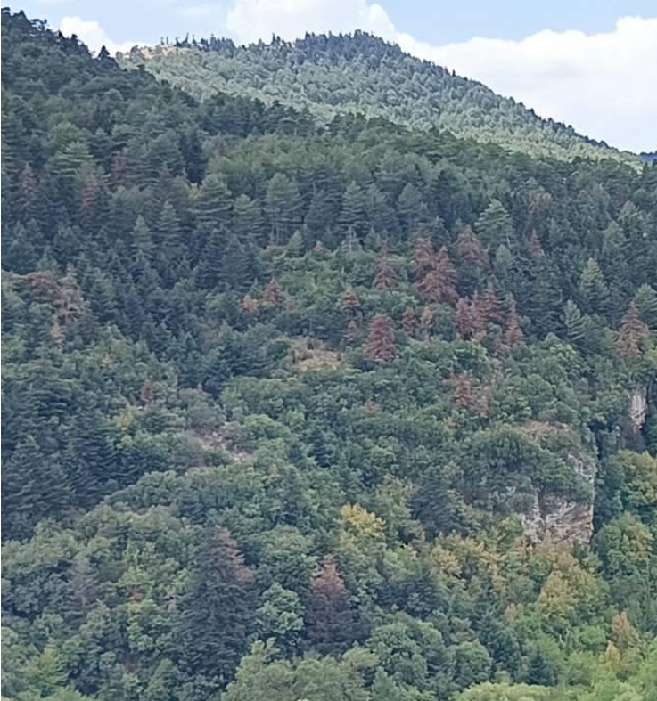 - Προβλήματα στο έλατο (Abies cephalonica): Στην κεντρική και νότια Ελλάδα, οι ελατοδάσοι (π.χ. στις περιοχές Καλυβρύτων, Ευρυτανίας) βιώνουν έντονη θνησιμότητα λόγω περιβαλλοντικής καταπόνησης από την αλλαγή κλίματος.