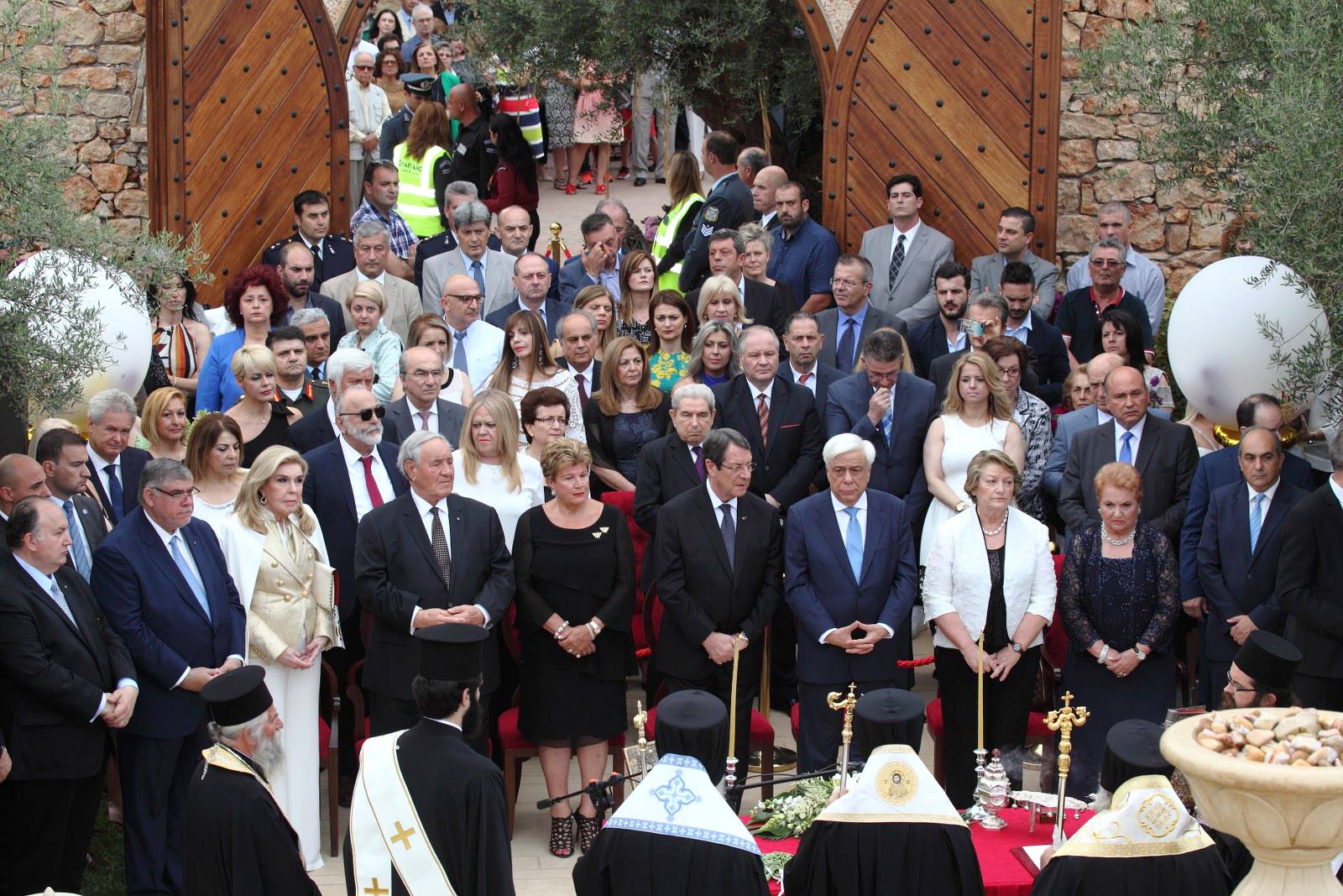 Σε μια λαμπερή εκδήλωση με έντονο κοσμικό χαρακτήρα, που παρουσίασε η γνωστή ηθοποιός Ζέτα Μακρυπούλια, παρέστησαν ο Πρόεδρος της Ελληνικής Δημοκρατίας Πρ. Παυλόπουλος, ο Πρόεδρος της Κυπριακής Δημοκρατίας Ν. Αναστασιάδης, ο πρόεδρος του κυπριακού κοινοβουλίου Δ. Συλλούρης και ο πρώην Πρόεδρος της Κύπρου Δ. Χριστόφιας. Ακόμα, ο Αρχιεπίσκοπος Αμερικής κ. Δημήτριος, ο σεβασμιώτατοι Μητροπολίτες Μονεμβασίας & Σπάρτης κ. Ευστάθιος και Μάνης κ. Χρυσόστομος. Το «παρών» έδωσαν, επίσης, ο Αρχηγός της Ελληνικής Αστυνομίας, Αντιστράτηγος Κ. Τσουβάλας, ο υπουργός Ναυτιλίας και Νησιωτικής Πολιτικής Π. Κουρουμπλής, ο γενικός γραμματέας Συντονισμού του Υπουργείου Εσωτερικών Τζ. Φιλιππάκος, οι πρώην υπουργοί Μιλτ. Βαρβιτσιώτης και Τ. Σκανδαλάκης και οι Λάκωνες βουλευτές Στ. Αραχωβίτης, Θ. Δαβάκης και Λ. Γρηγοράκος.