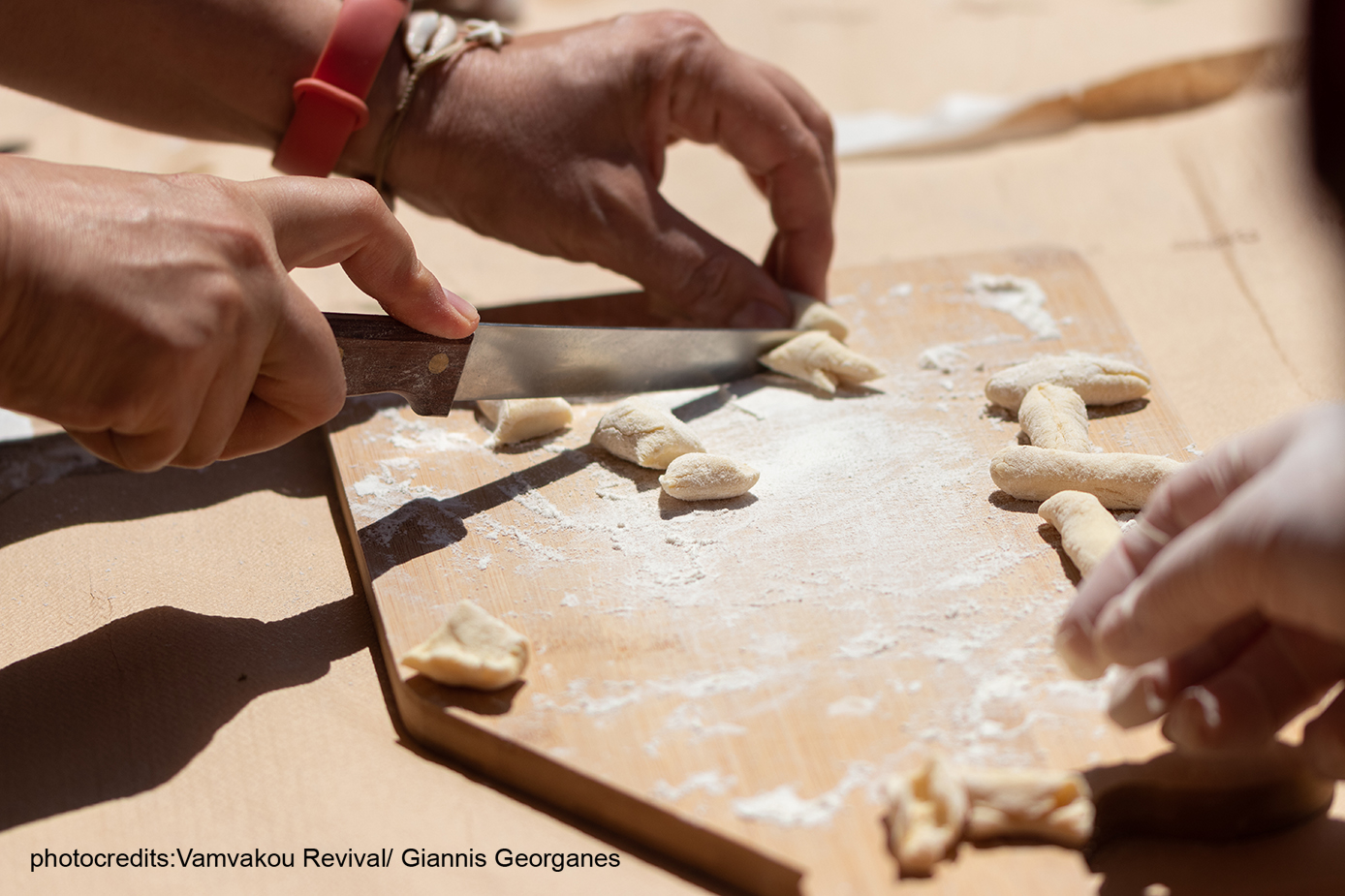 Ο Χάρης Βασιλάκος, Υπεύθυνος Προγραμμάτων της «Vamvakou Revival», καλωσόρισε όλους όσοι έφτασαν στο όμορφο χωριό της Βαμβακούς, την γενέτειρα του Σταύρου Νιάρχου, και στην τοποθεσία Κάτω Βρύση όπου έγινε το πικ νικ. Η υπεύθυνη του cluster Αγροδιατροφής & Επιχειρηματικότητας του ICC WOMEN HELLAS, Νίκη Γιαβρόγλου, η επικεφαλής του cluster Λακωνίας, Αιμιλία Ρηγάκου, η chef, Ντίνα Νικολάου, και τα μέλη του cluster Λακωνίας, Μαρία Καράμπελα, συγγραφέας γαστρονομίας & Πάολα Ρόχας, βιολόγος, Επίκουρη Καθηγήτρια του Πανεπιστημίου Πελοποννήσου, με συντονίστρια την υπεύθυνη επικοινωνίας του ICCWH, Ειρήνη Νικολοπούλου, μύησαν τους καλεσμένους ντόπιους, εκδρομείς και επισκέπτες του χωριού στην παραδοσιακή κουζίνα του Πάρνωνα, αποκαλύπτοντας πώς συνδέεται η μαγειρική με την ιστορία και τον πολιτισμό της Λακωνίας. Μαζί τους, παράλληλα με τις ομιλίες, τρεις κυρίες από τη Βαμβακού παρουσίαζαν πώς φτιάχνονται τα παραδοσιακά ζυμαρικά, οι Γκόγκες.