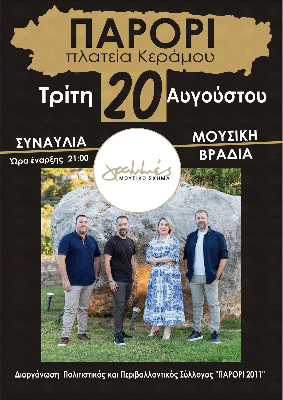 Ψυχαγωγική βραδιά με συναυλία του μουσικού σχήματος «Γραμμές», διοργανώνει στο Παρόρι ο Πολιτιστικός και Περιβαλλοντικός Σύλλογος «Παρόρι 2011».