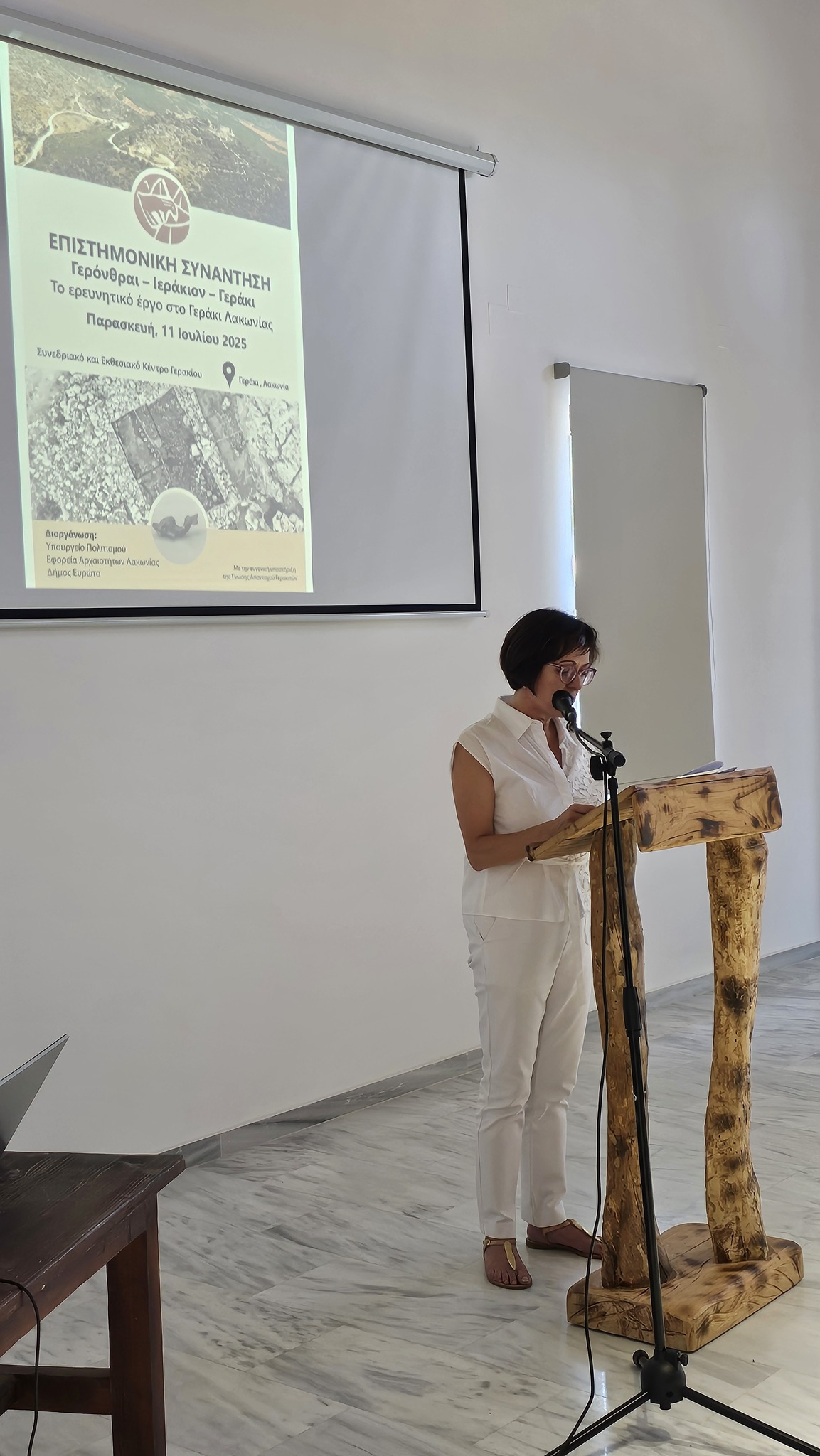 Αρχαιολόγοι του Υπουργείου Πολιτισμού, που υπηρετούν στην Εφορεία Αρχαιοτήτων Λακωνίας και το Επιγραφικό Μουσείο, καθώς και επιστήμονες του Vrije Universiteit Amsterdam, παρουσίασαν το έργο της Αρχαιολογικής Υπηρεσίας στην περιοχή, την έρευνα στην ακρόπολη των αρχαίων Γερονθρών και στο κάστρο Γερακίου, καθώς επίσης στην αρχαία κώμη του Σελινούντα και το μεταξύ αυτής και των αρχαίων Γερονθρών ιερό στα Ρυκάκια Γερακίου.