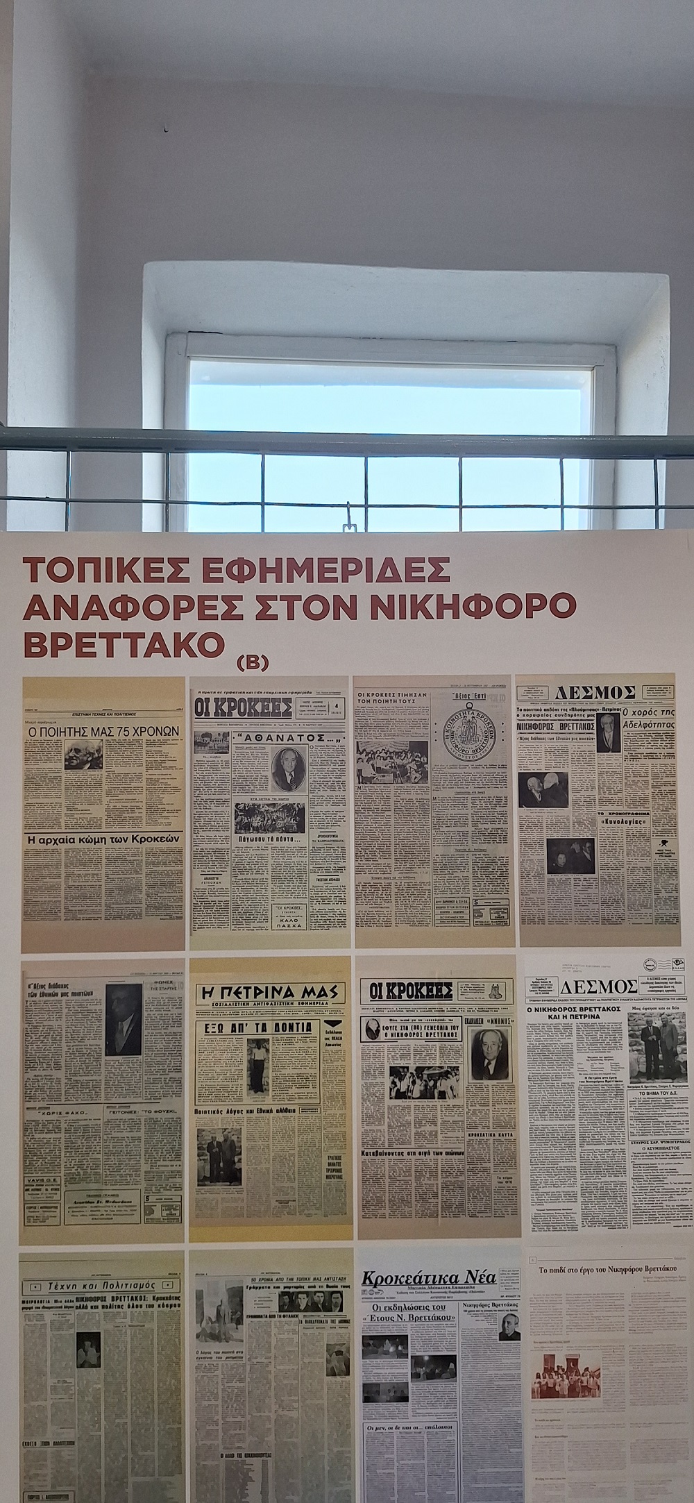 Μέσα από ένα πλούσιο αρχειακό υλικό, φωτογραφίες, χειρόγραφα και προσωπικά αντικείμενα του ποιητή, που περιλαμβάνονται στην έκθεση, αναδεικνύεται η βαθιά ανθρωπιστική, φιλοσοφική και κοινωνική διάσταση του έργου του Νικηφόρου Βρεττάκου, ο οποίος υπήρξε υπέρμαχος της ειρήνης, της αξιοπρέπειας και του σεβασμού προς τον άνθρωπο.