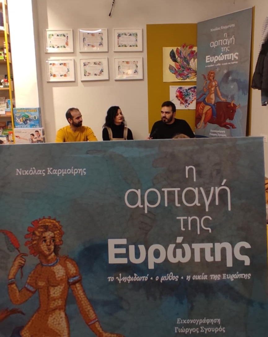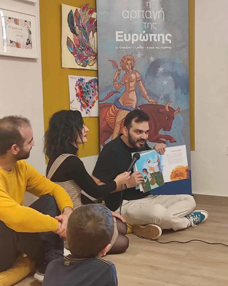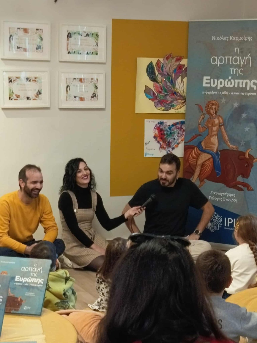 Στο επίκεντρο της εκδήλωσης βρέθηκε ο μύθος της αρπαγής της Ευρώπης, με αφορμή το νέο βιβλίο του συγγραφέα Ν. Ι. Καρμοίρη «Η αρπαγή της Ευρώπης», σε εικονογράφηση Γιώργου Σγουρού. Η ομάδα της «ΙΡΙΣ» παρουσίασε επιλεγμένα αποσπάσματα του έργου, μεταφέροντας τα παιδιά σε έναν κόσμο μυθολογίας, φαντασίας και συμβολισμών.