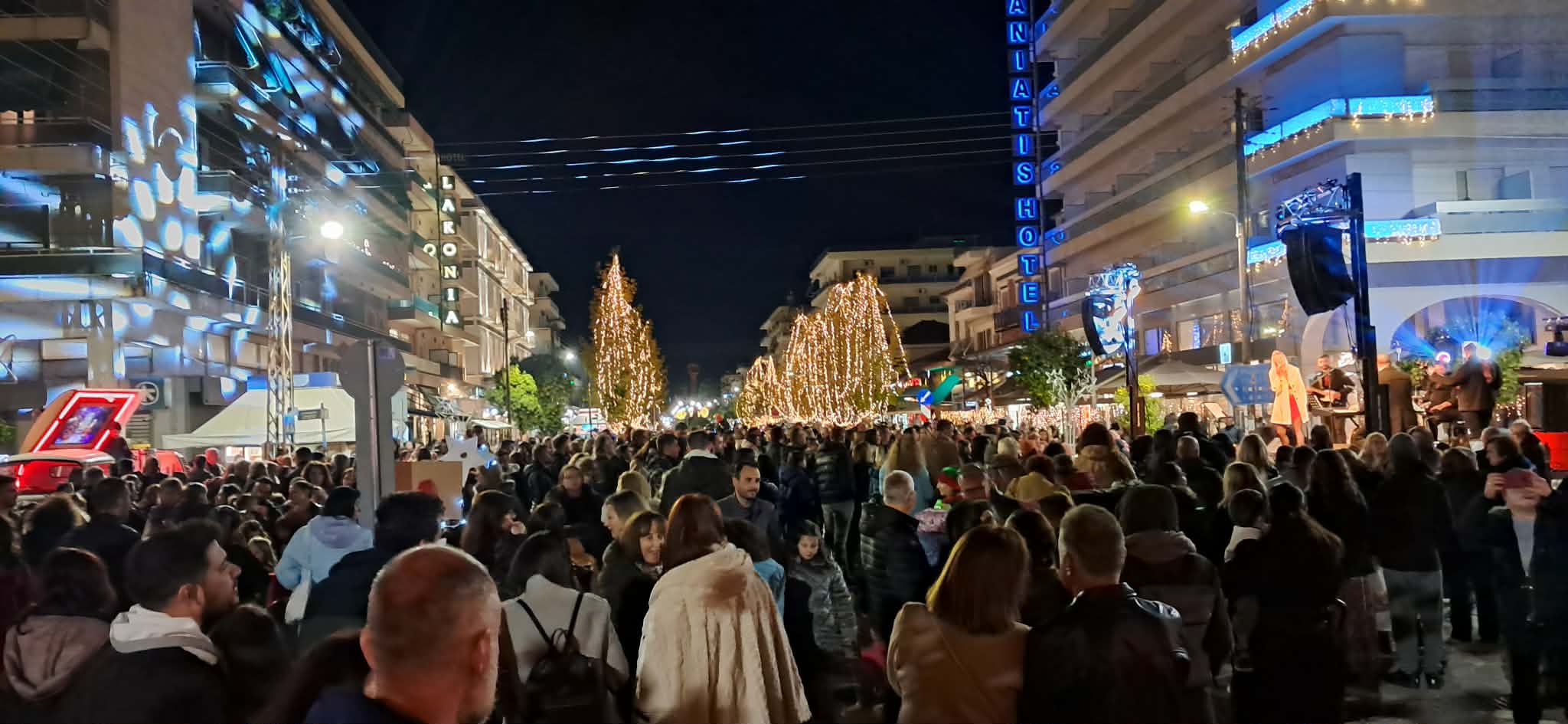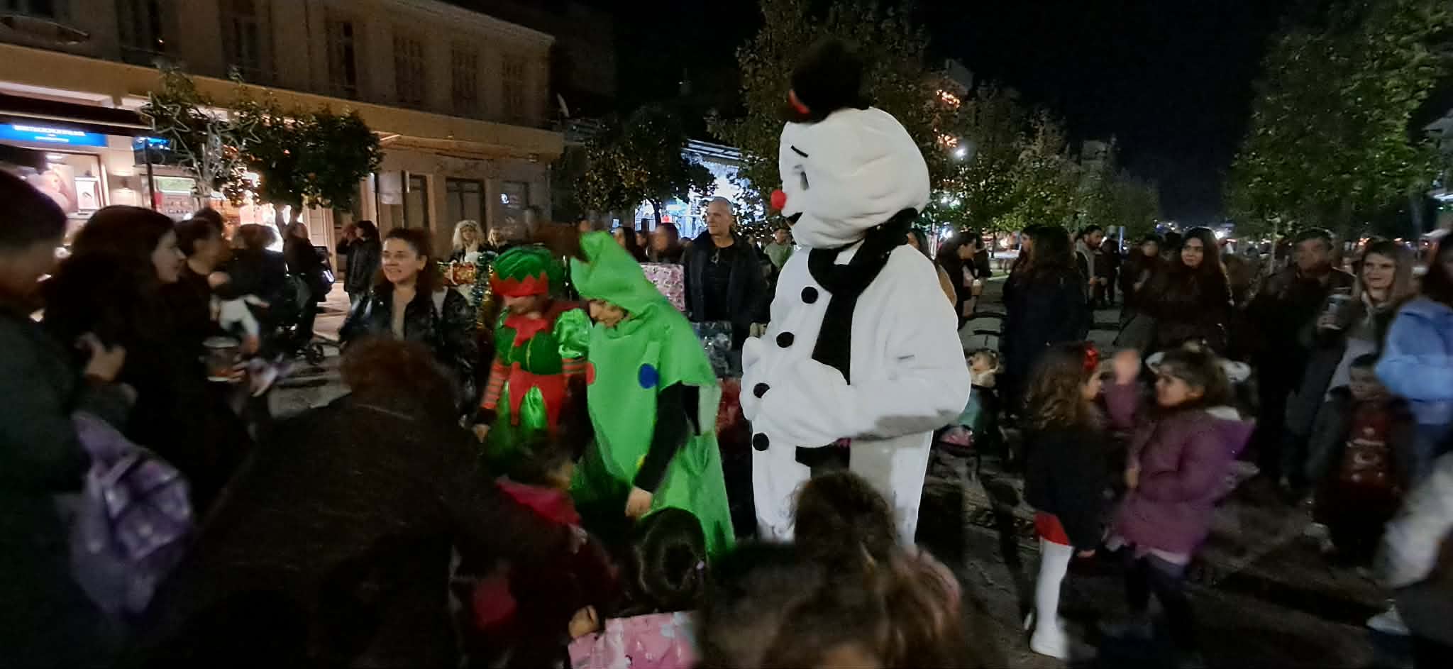 Από νωρίς το απόγεμα, μικροί και μεγάλοι γέμισαν την Κ. Παλαιολόγου, η οποία ήταν εκτάκτως κλειστή για την κυκλοφορία των οχημάτων λόγω της γιορτινής περίστασης, απολαμβάνοντας ζεστό κρασί, φωτογραφίες με τη μασκότ-χιονάνθρωπο και χριστουγεννιάτικες ζωγραφιές στο πρόσωπο από «ξωτικά», που ανέλαβαν να μεταφέρουν τους μικρούς φίλους στο κλίμα των ημερών.