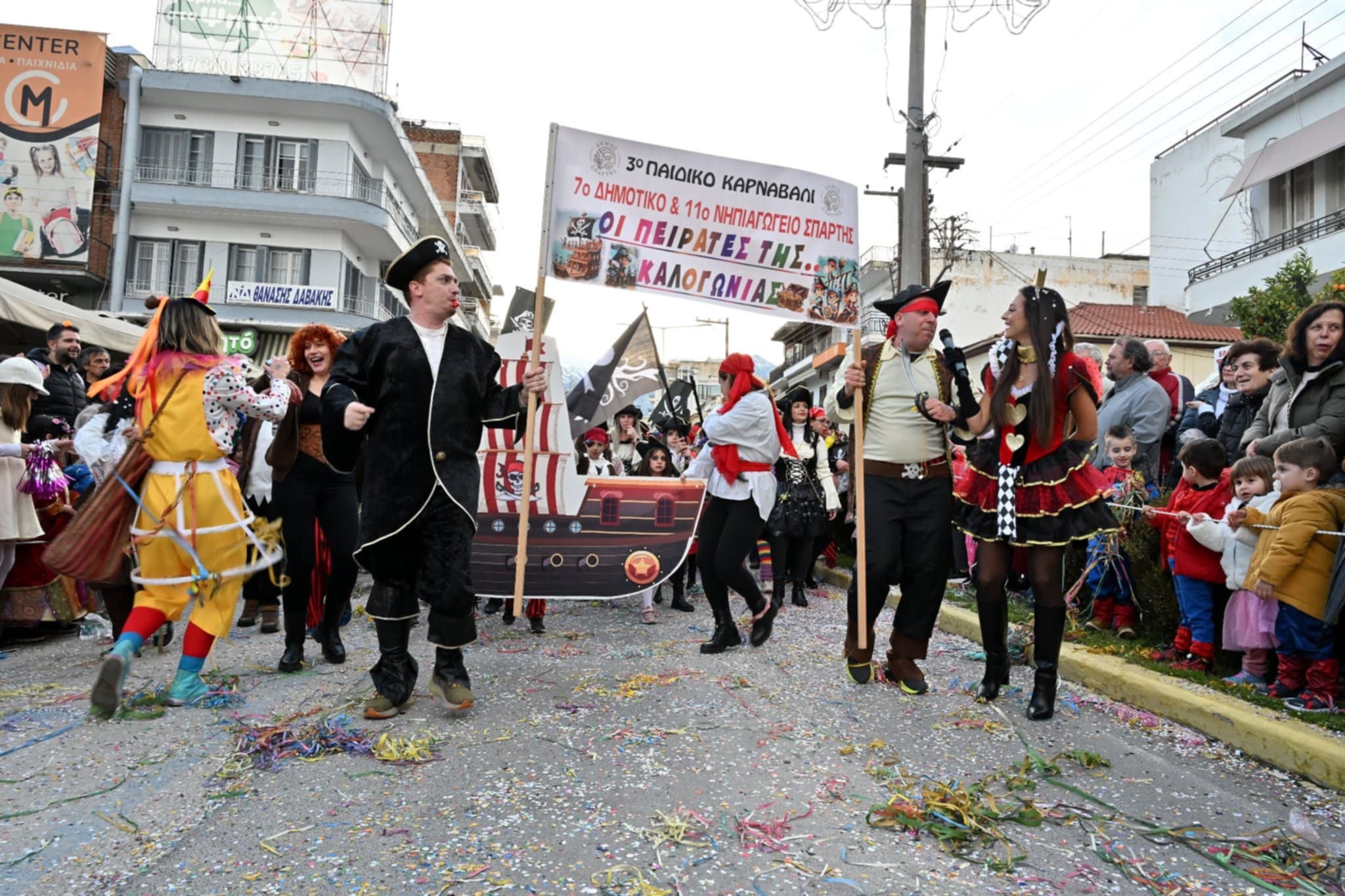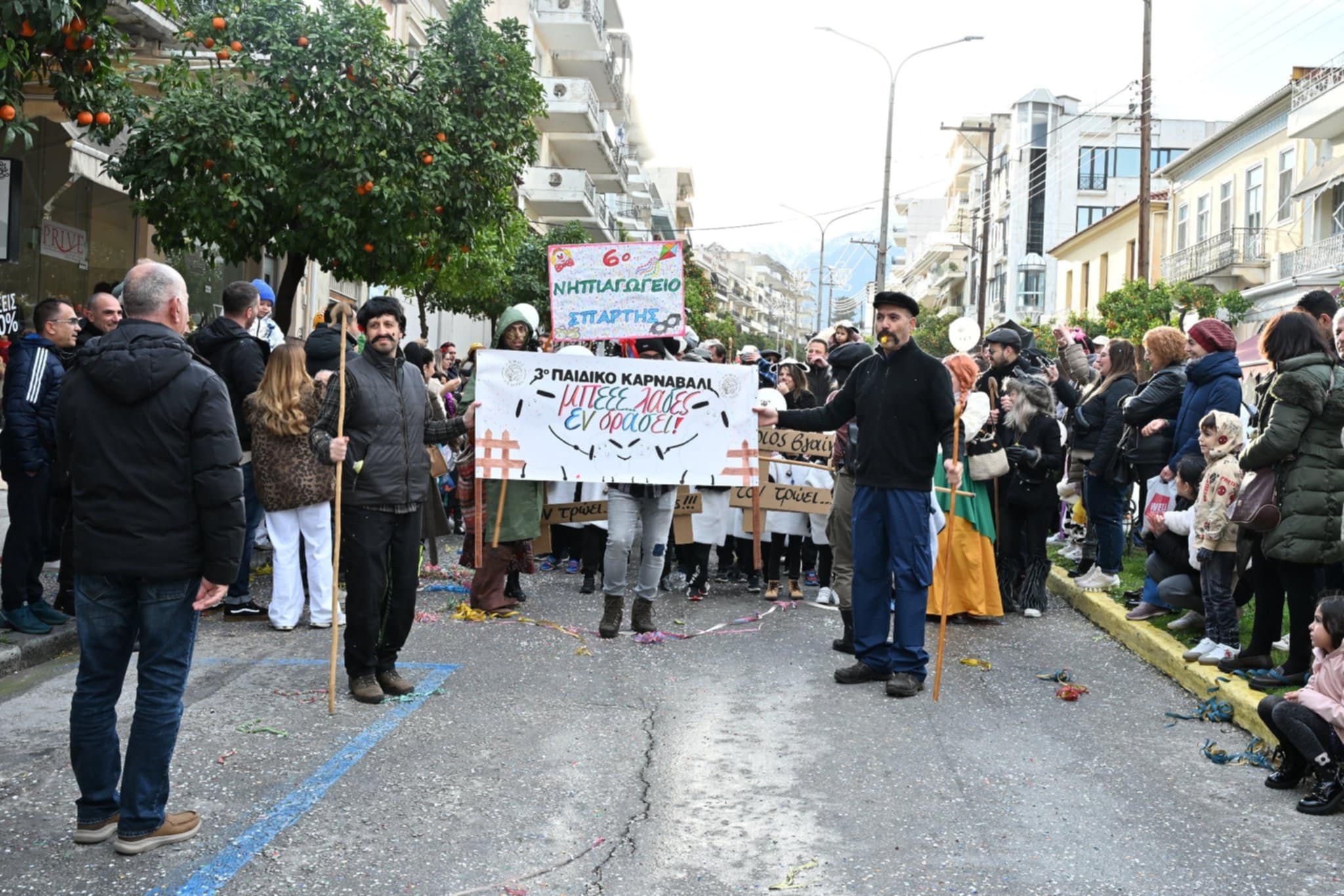 Ήδη από νωρίς το απόγευμα του Σαββάτου (21/2), μικροί και μεγάλοι συγκεντρώνονταν πέριξ της Λεωφόρου Λυκούργου και στην κεντρική πλατεία, προκειμένου να γιορτάζουν και να ξεφαντώσουν με τα γκρουπ των μικρών καρναβαλιστών. Συνολικά 2.000 άτομα, χωρισμένα σε 14 γκρουπ με μαθητές από σχολικές μονάδες του Δ. Σπάρτης και τους συνοδούς τους, παρήλασαν επί της Λυκούργου, σκορπίζοντας κέφι, χαρά, ζωντάνια και ξεσηκώνοντας τον κόσμο με μπόλικες σερπαντίνες και κομφετί.