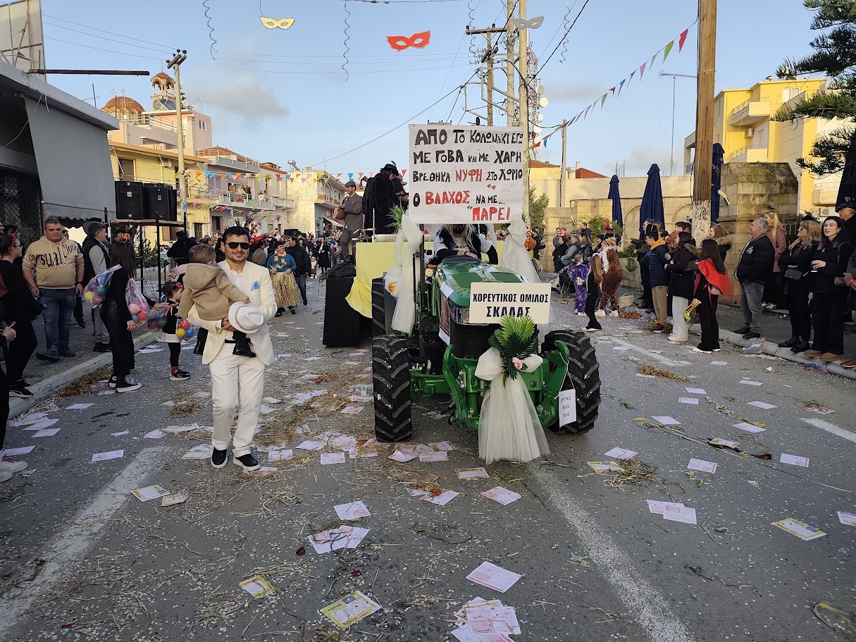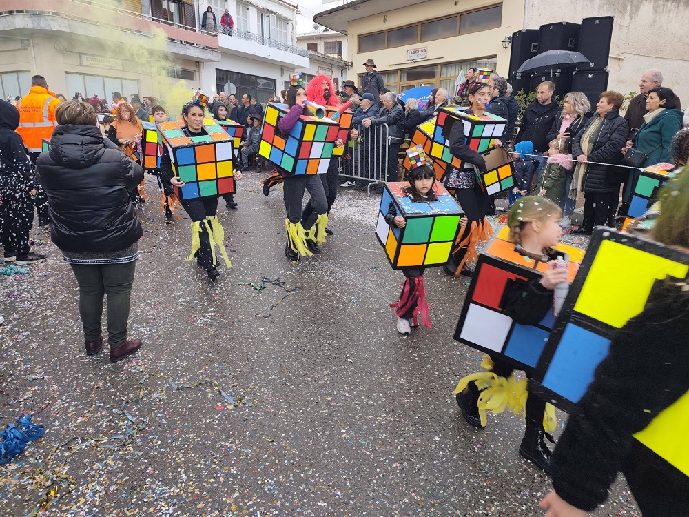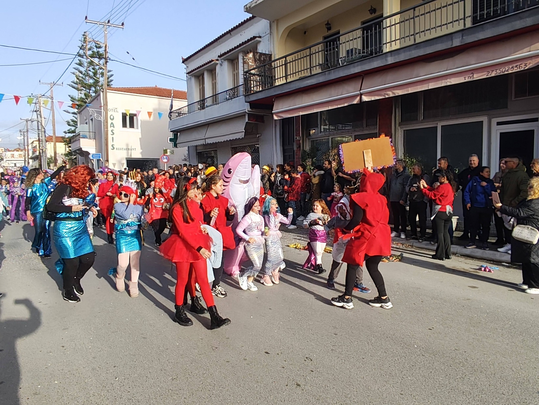 Η κεντρική πλατεία και οι γύρω δρόμοι πλημμύρισαν από δεκάδες καρναβαλιστές και θεατές. Τα άρματα, αποτέλεσμα πολύμηνης προετοιμασίας και συλλογικής δουλειάς, ξεχώρισαν για την ευρηματικότητα και τη σατιρική τους διάθεση. Θέματα εμπνευσμένα από την κοινωνική πραγματικότητα, την επικαιρότητα και την καθημερινότητα παρουσιάστηκαν με χιούμορ, αυτοσαρκασμό και έντονη καλλιτεχνική διάθεση. Μεταξύ άλλων ξεχώρισε το πολύχρωμο άρμα με τη «νύφη», στολισμένο με λουλούδια και έντονα χρώματα, έδωσε μια εικόνα χαράς και αισιοδοξίας, συμβολίζοντας τη γιορτή της ζωής και της άνοιξης.