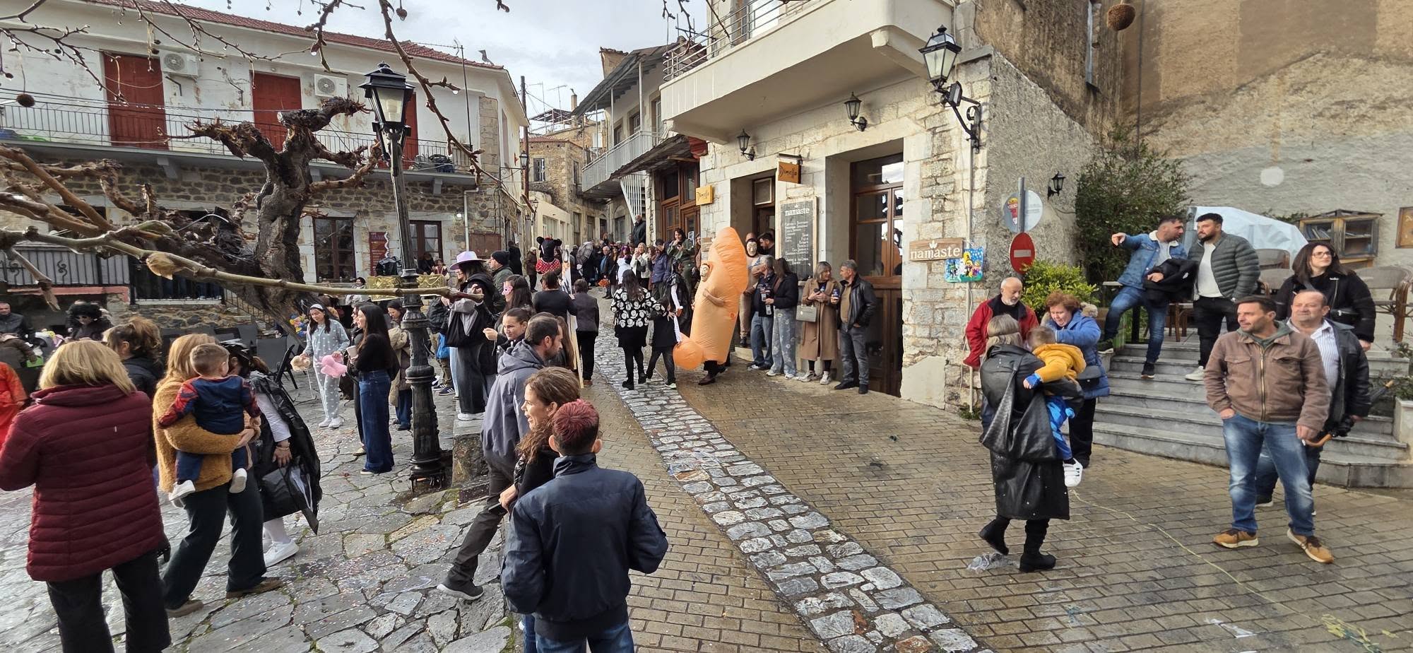 Γύρω από τις φλόγες, κάτοικοι και επισκέπτες χόρεψαν, τραγούδησαν και συμμετείχαν σε ένα γνήσιο αποκριάτικο γλέντι, που θύμισε εικόνες άλλων εποχών. Την Καθαρά Δευτέρα, τα παραδοσιακά Κούλουμα στην πλατεία της Πάνω Βρύσης ένωσαν μικρούς και μεγάλους σε ένα κοινό τραπέζι με σαρακοστιανά εδέσματα, μουσική και παραδοσιακή φιλοξενία.